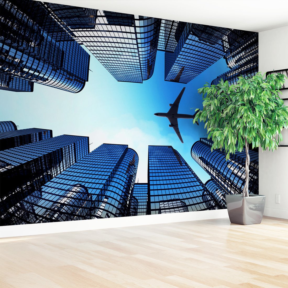Nadaj swojemu wnętrzu unikalny charakter i głębię dzięki naszej fototapecie z motywem miasto, samolot, budynki. Ta imponująca dekoracja ścienna to połączenie nowoczesnego designu i zapierającego dech w piersiach motywu, które całkowicie odmieni Twoje pomieszczenie