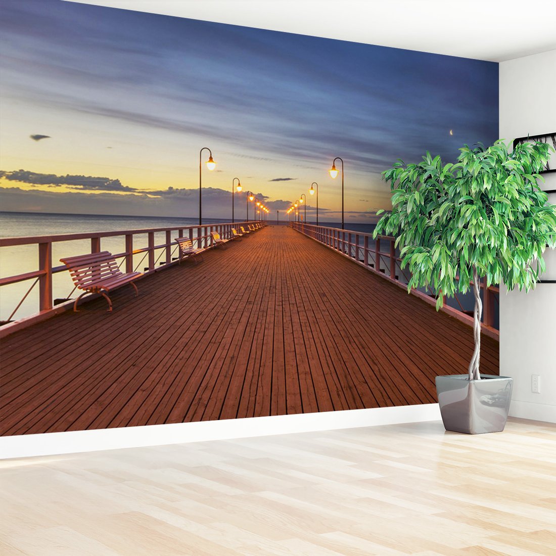 Nadaj swojemu wnętrzu unikalny charakter i głębię dzięki naszej fototapecie z motywem morze, molo, wieczór. Ta imponująca dekoracja ścienna to połączenie nowoczesnego designu i zapierającego dech w piersiach motywu, które całkowicie odmieni Twoje pomieszczenie
