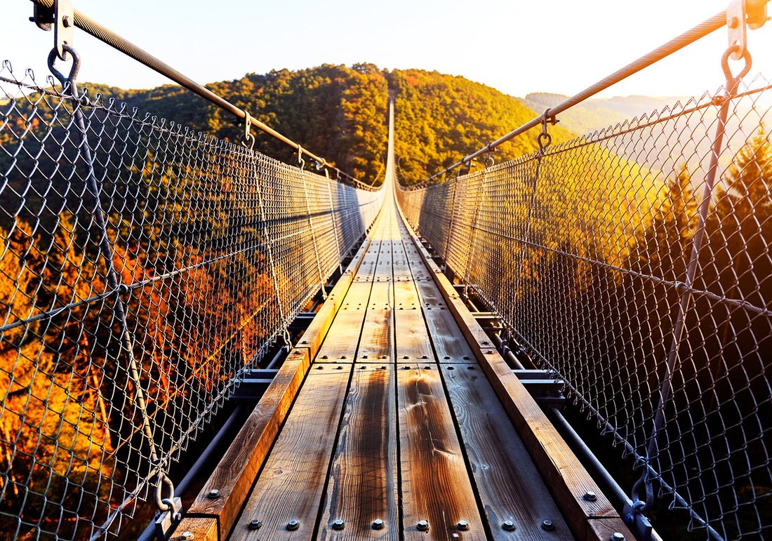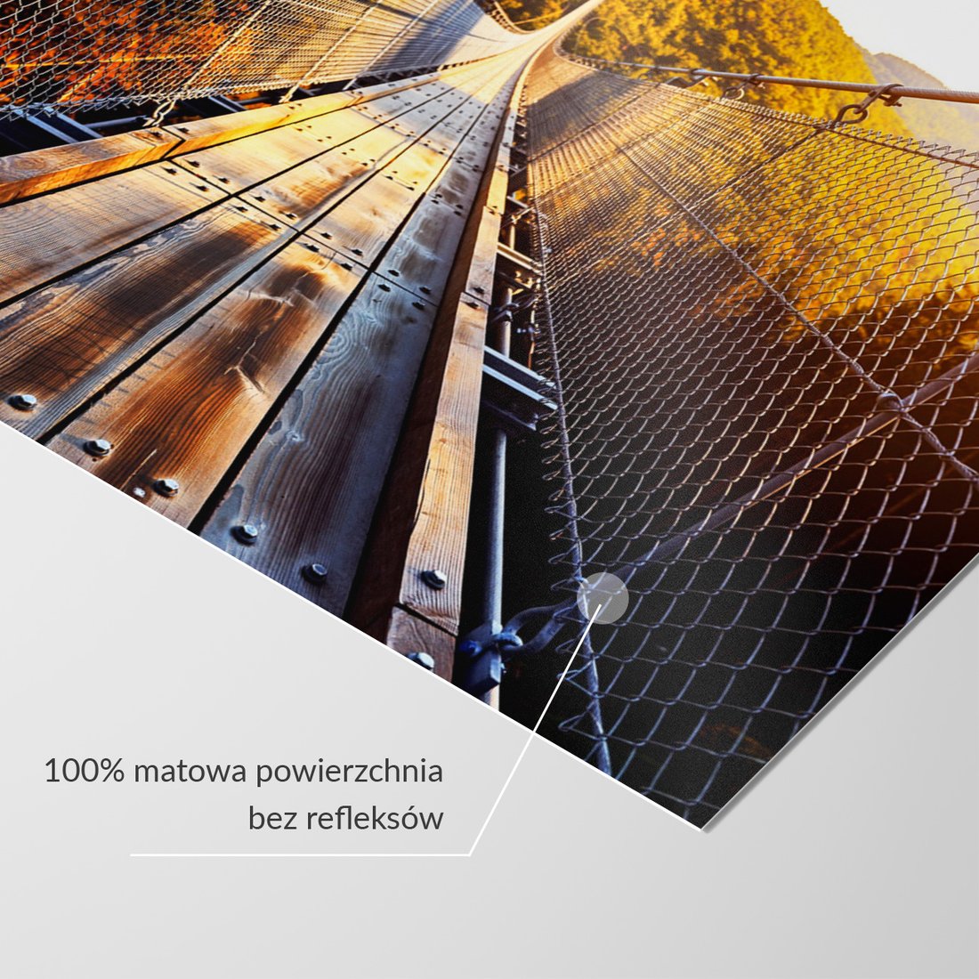 Nadaj swojemu wnętrzu unikalny charakter i głębię dzięki naszej fototapecie z motywem most wiszący, natura, drewno. Ta imponująca dekoracja ścienna to połączenie nowoczesnego designu i zapierającego dech w piersiach motywu, które całkowicie odmieni Twoje pomieszczenie