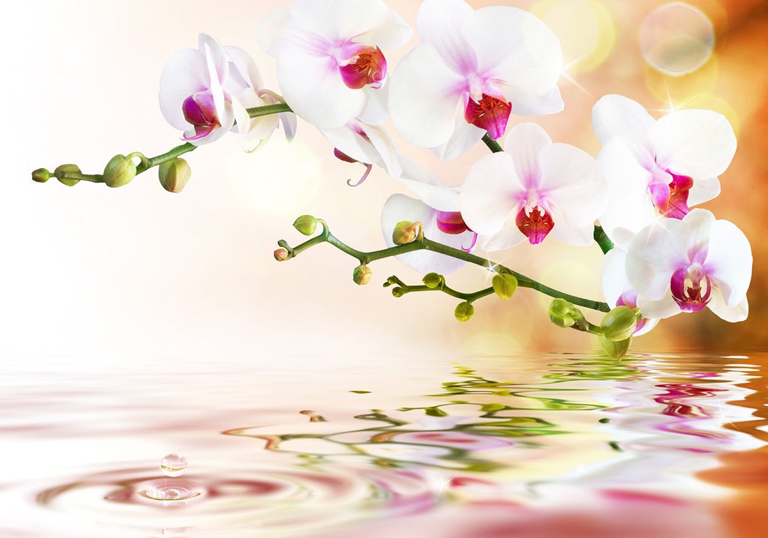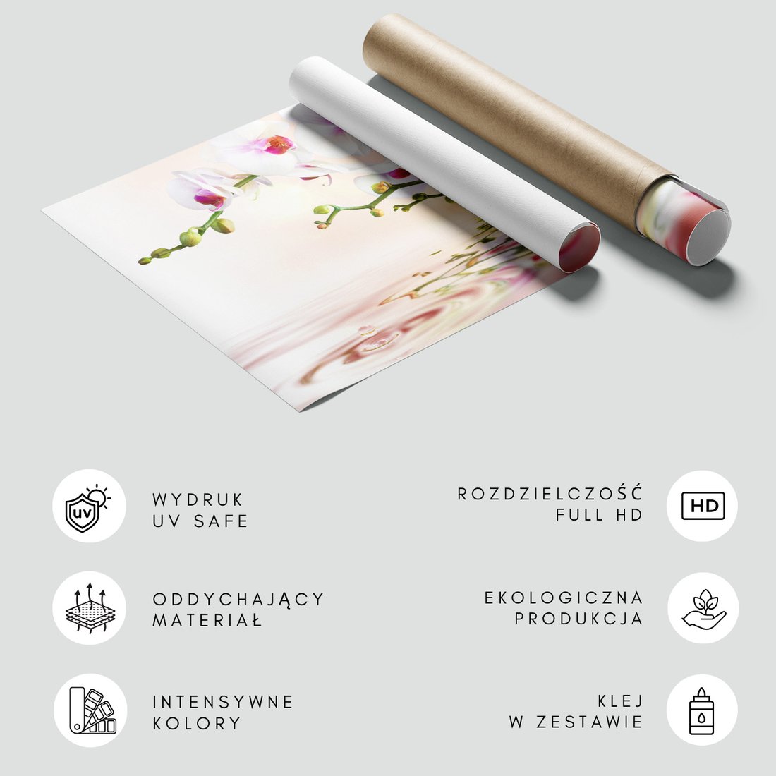 Nadaj swojemu wnętrzu unikalny charakter i głębię dzięki naszej fototapecie z motywem orchidee, kwiaty, woda. Ta imponująca dekoracja ścienna to połączenie nowoczesnego designu i zapierającego dech w piersiach motywu, które całkowicie odmieni Twoje pomieszczenie