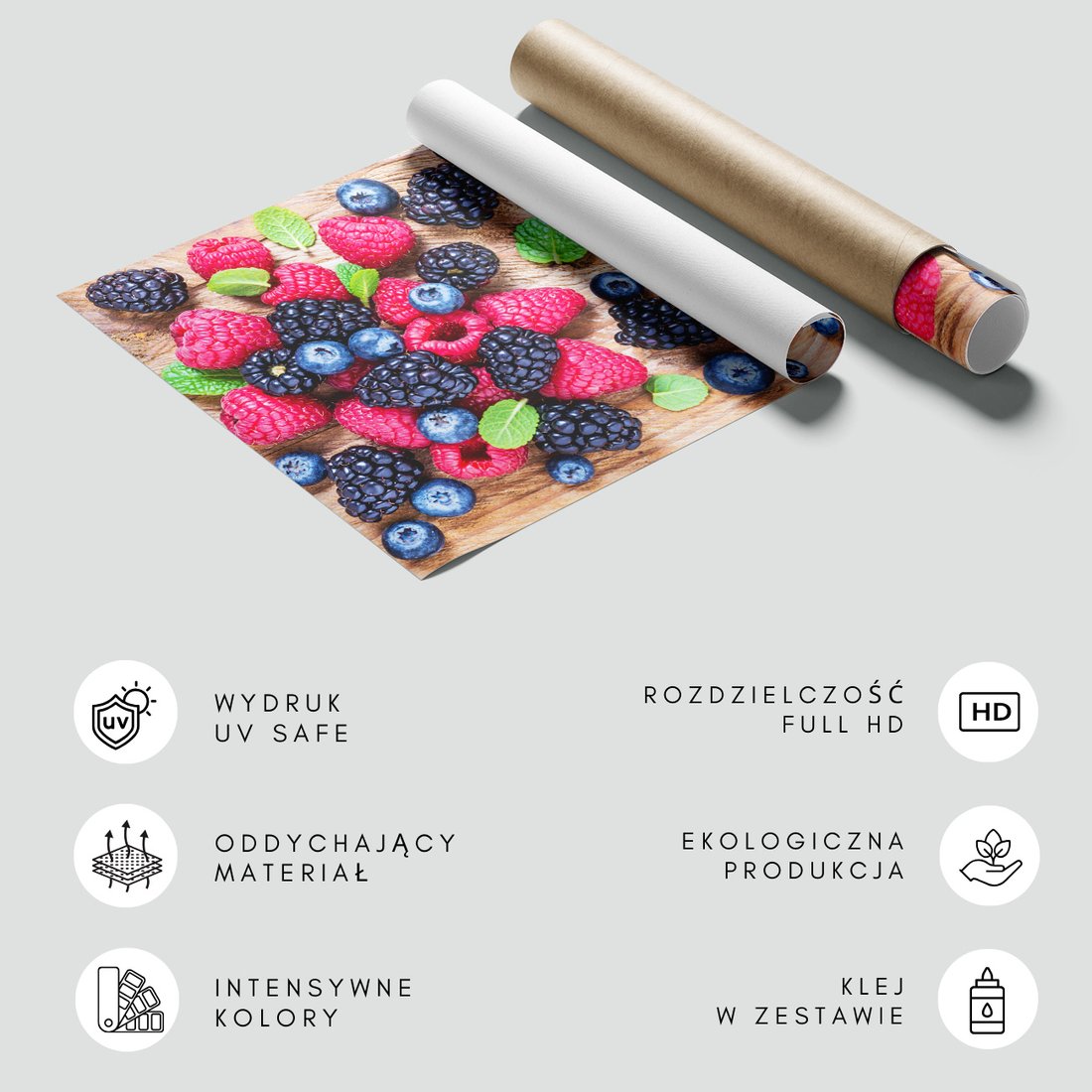 Nadaj swojemu wnętrzu unikalny charakter i głębię dzięki naszej fototapecie z motywem owoce, jagody, maliny. Ta imponująca dekoracja ścienna to połączenie nowoczesnego designu i zapierającego dech w piersiach motywu, które całkowicie odmieni Twoje pomieszczenie