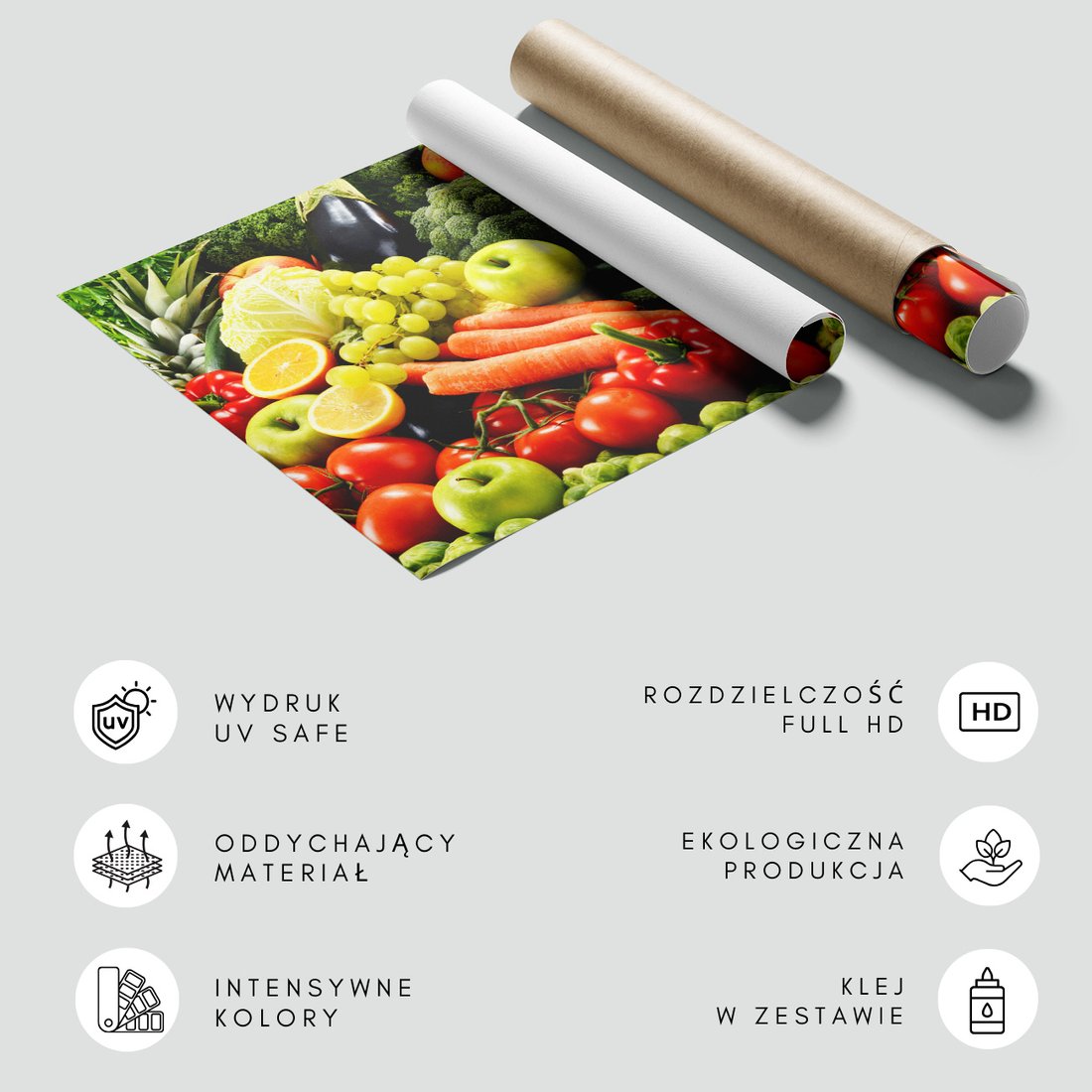 Nadaj swojemu wnętrzu unikalny charakter i głębię dzięki naszej fototapecie z motywem owoce, warzywa, zdrowie. Ta imponująca dekoracja ścienna to połączenie nowoczesnego designu i zapierającego dech w piersiach motywu, które całkowicie odmieni Twoje pomieszczenie