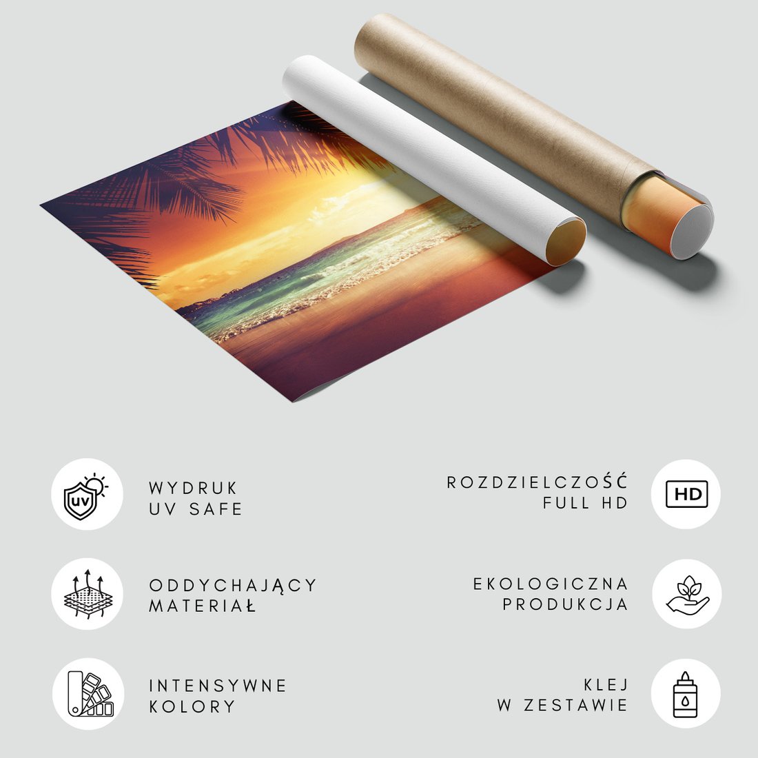 Nadaj swojemu wnętrzu unikalny charakter i głębię dzięki naszej fototapecie z motywem plaża, morze, palmy. Ta imponująca dekoracja ścienna to połączenie nowoczesnego designu i zapierającego dech w piersiach motywu, które całkowicie odmieni Twoje pomieszczenie