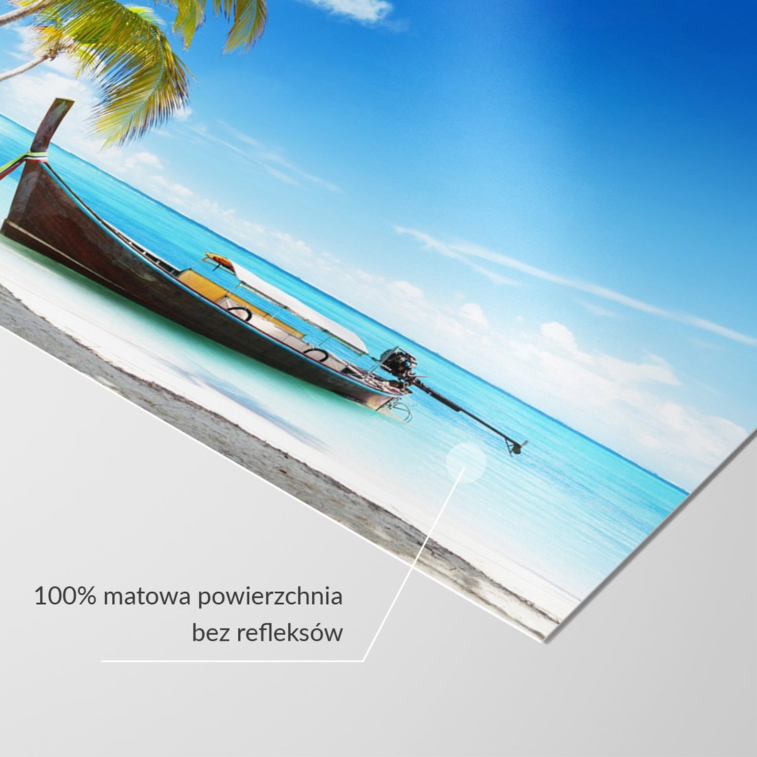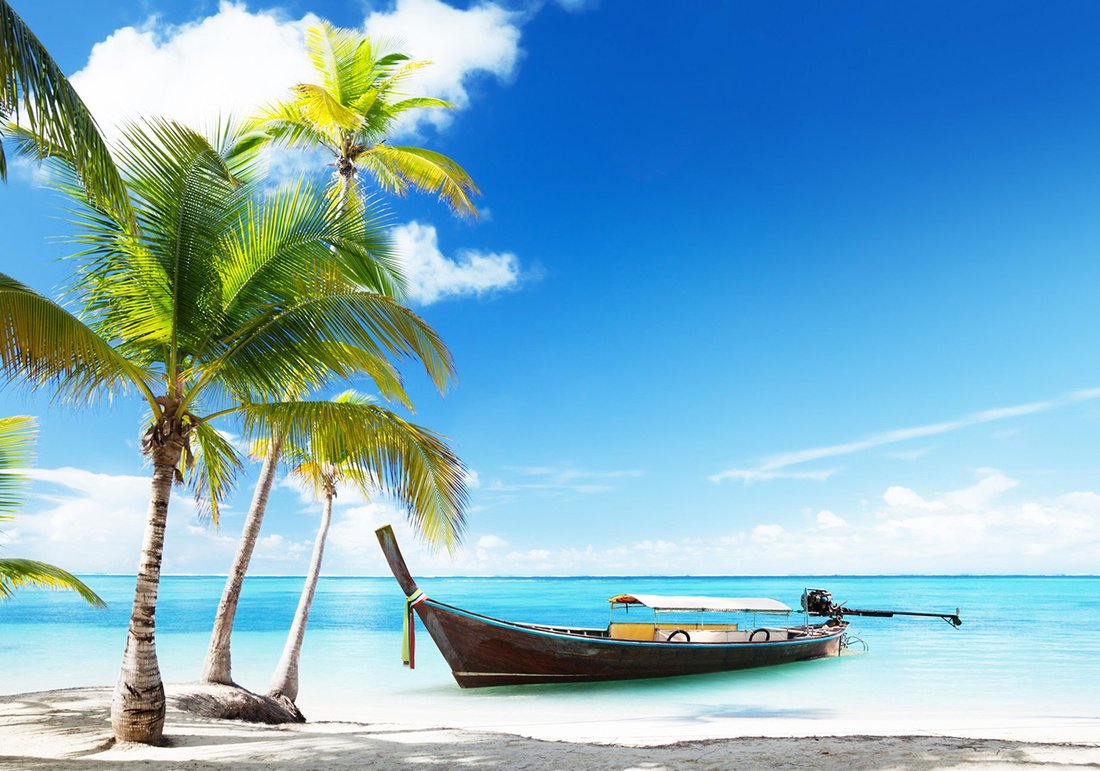 Nadaj swojemu wnętrzu unikalny charakter i głębię dzięki naszej fototapecie z motywem plaża, palmy, łódź. Ta imponująca dekoracja ścienna to połączenie nowoczesnego designu i zapierającego dech w piersiach motywu, które całkowicie odmieni Twoje pomieszczenie