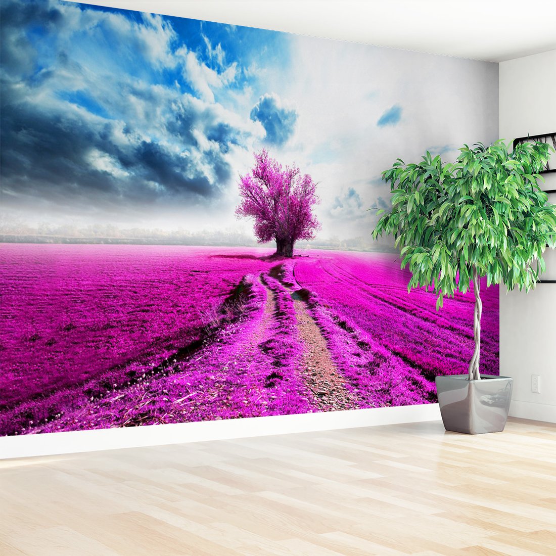 Nadaj swojemu wnętrzu unikalny charakter i głębię dzięki naszej fototapecie z motywem pole, drzewo, różowy. Ta imponująca dekoracja ścienna to połączenie nowoczesnego designu i zapierającego dech w piersiach motywu, które całkowicie odmieni Twoje pomieszczenie