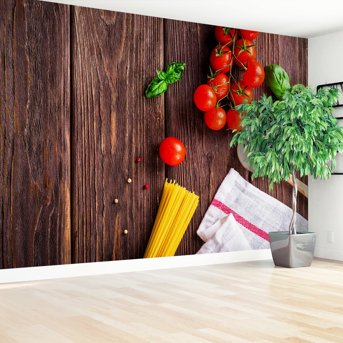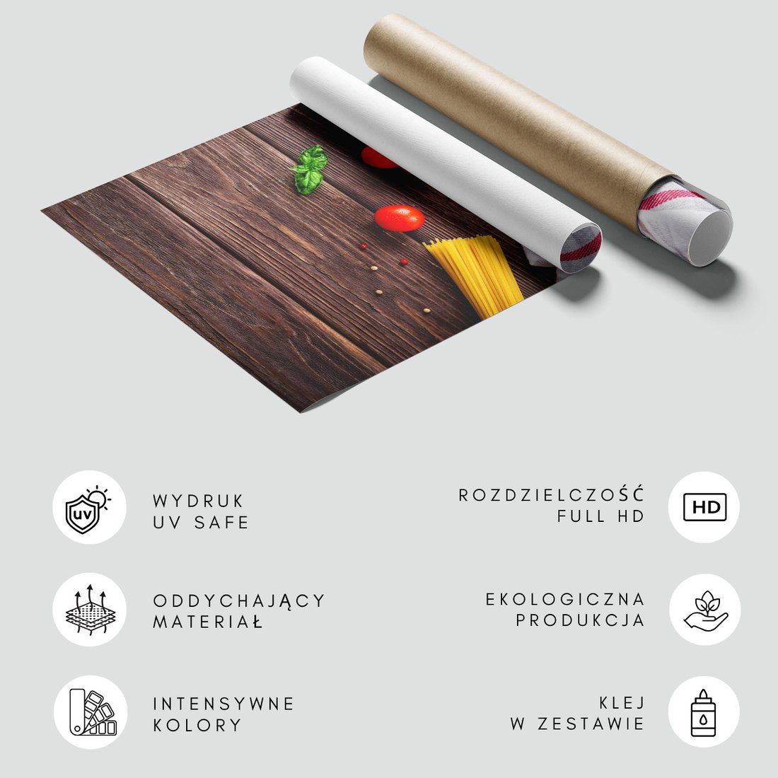 Nadaj swojemu wnętrzu unikalny charakter i głębię dzięki naszej fototapecie z motywem pomidory, spaghetti, bazylia. Ta imponująca dekoracja ścienna to połączenie nowoczesnego designu i zapierającego dech w piersiach motywu, które całkowicie odmieni Twoje pomieszczenie
