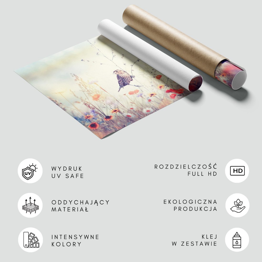 Nadaj swojemu wnętrzu unikalny charakter i głębię dzięki naszej fototapecie z motywem ptak, kwiaty, łąka. Ta imponująca dekoracja ścienna to połączenie nowoczesnego designu i zapierającego dech w piersiach motywu, które całkowicie odmieni Twoje pomieszczenie
