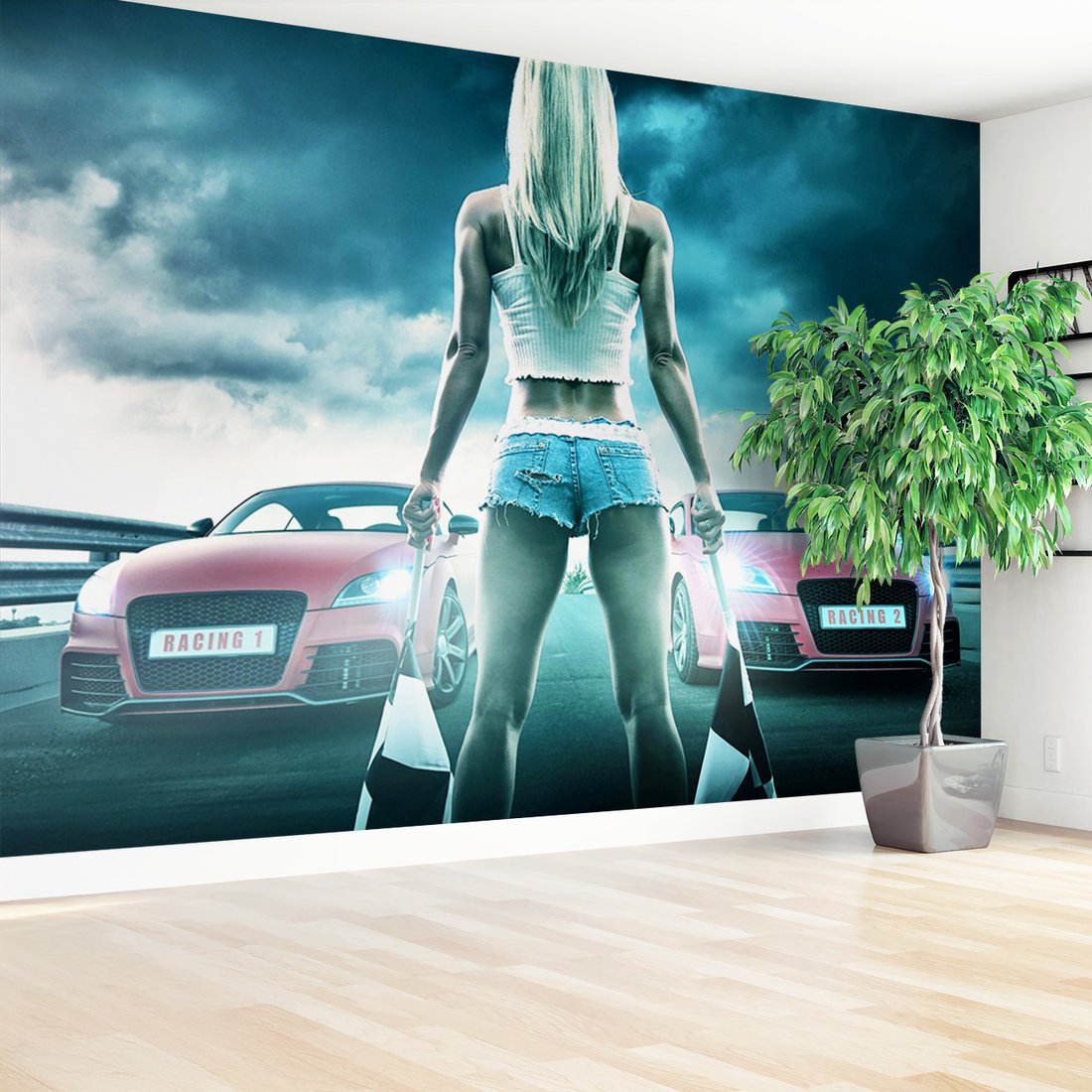 Nadaj swojemu wnętrzu unikalny charakter i głębię dzięki naszej fototapecie z motywem samochody, wyścigi, kobieta. Ta imponująca dekoracja ścienna to połączenie nowoczesnego designu i zapierającego dech w piersiach motywu, które całkowicie odmieni Twoje pomieszczenie