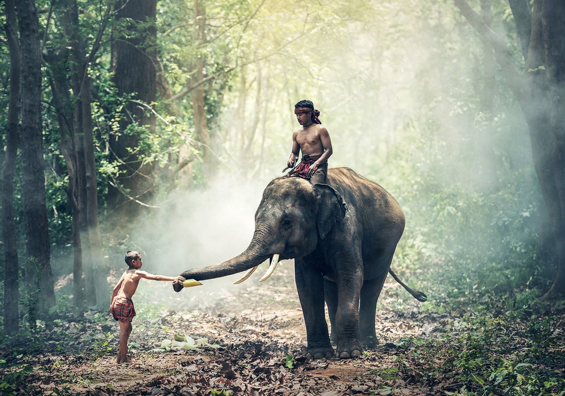 Nadaj swojemu wnętrzu unikalny charakter i głębię dzięki naszej fototapecie z motywem słoń, chłopcy, las. Ta imponująca dekoracja ścienna to połączenie nowoczesnego designu i zapierającego dech w piersiach motywu, które całkowicie odmieni Twoje pomieszczenie