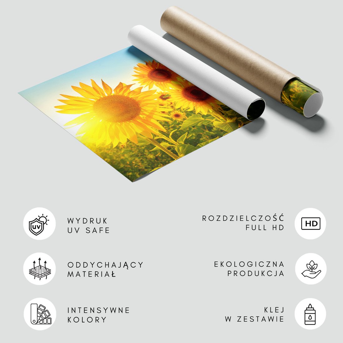 Nadaj swojemu wnętrzu unikalny charakter i głębię dzięki naszej fototapecie z motywem słoneczniki, lato, słońce. Ta imponująca dekoracja ścienna to połączenie nowoczesnego designu i zapierającego dech w piersiach motywu, które całkowicie odmieni Twoje pomieszczenie