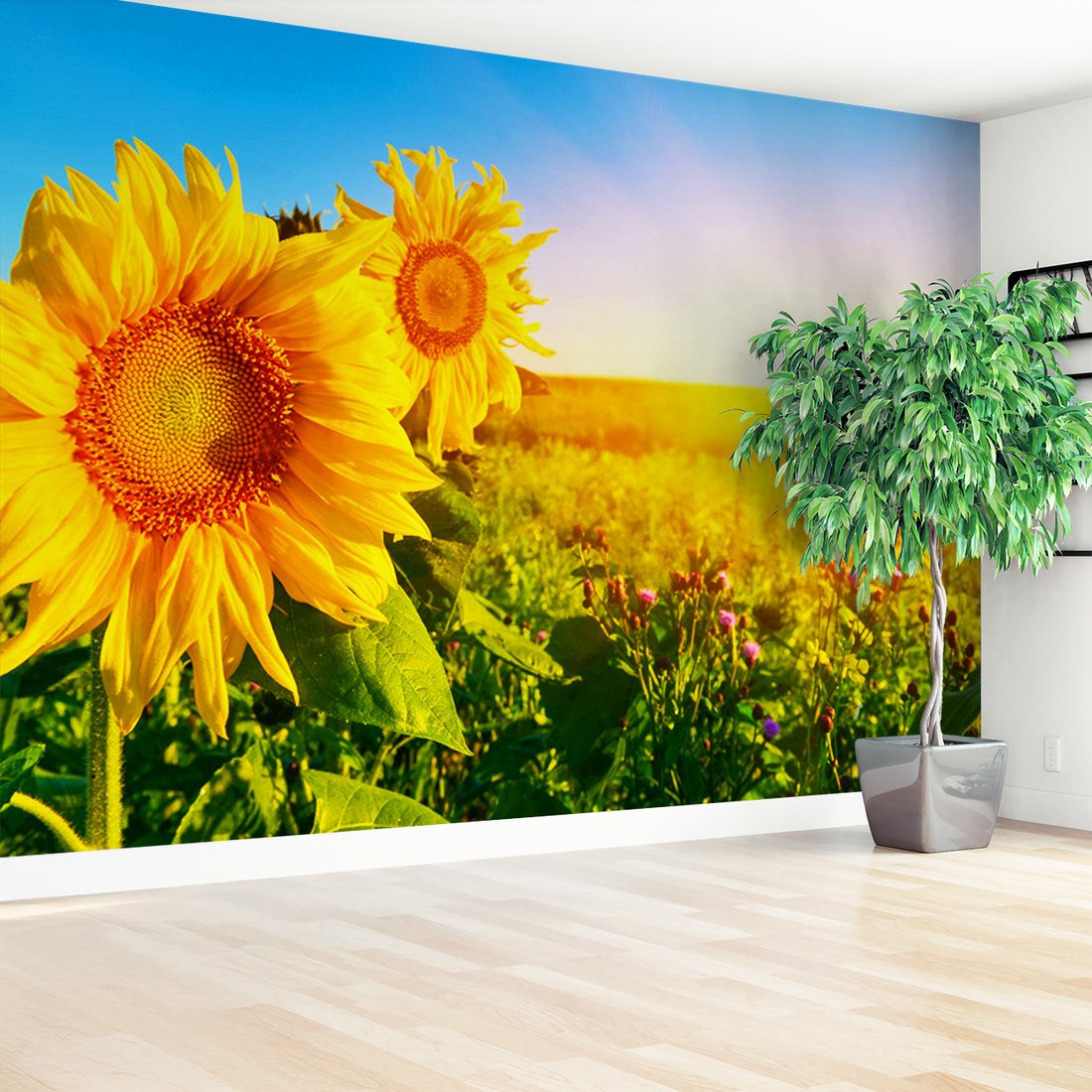 Nadaj swojemu wnętrzu unikalny charakter i głębię dzięki naszej fototapecie z motywem słoneczniki, pole, lato. Ta imponująca dekoracja ścienna to połączenie nowoczesnego designu i zapierającego dech w piersiach motywu, które całkowicie odmieni Twoje pomieszczenie