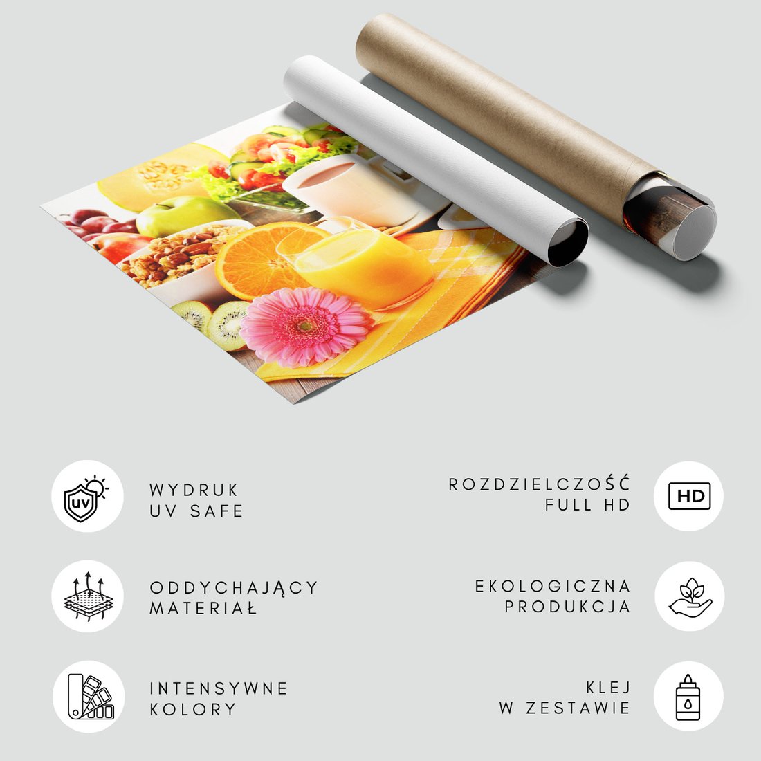 Nadaj swojemu wnętrzu unikalny charakter i głębię dzięki naszej fototapecie z motywem śniadanie, jedzenie, owoce. Ta imponująca dekoracja ścienna to połączenie nowoczesnego designu i zapierającego dech w piersiach motywu, które całkowicie odmieni Twoje pomieszczenie