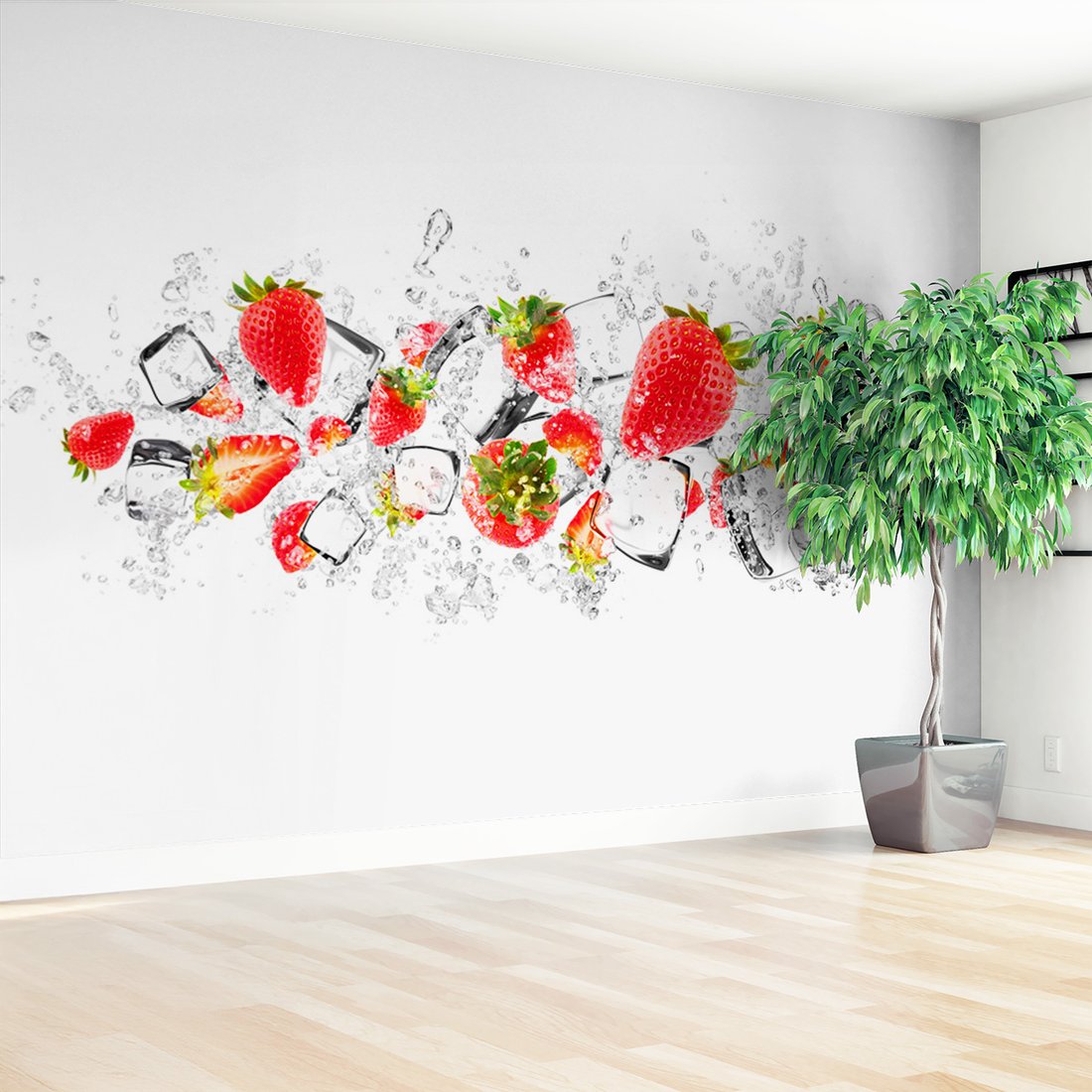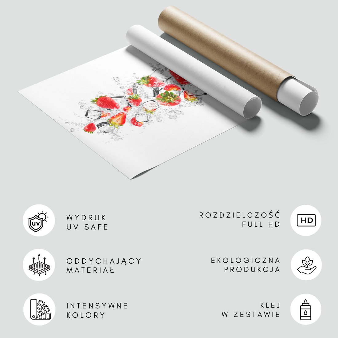 Nadaj swojemu wnętrzu unikalny charakter i głębię dzięki naszej fototapecie z motywem truskawki, lód, woda. Ta imponująca dekoracja ścienna to połączenie nowoczesnego designu i zapierającego dech w piersiach motywu, które całkowicie odmieni Twoje pomieszczenie