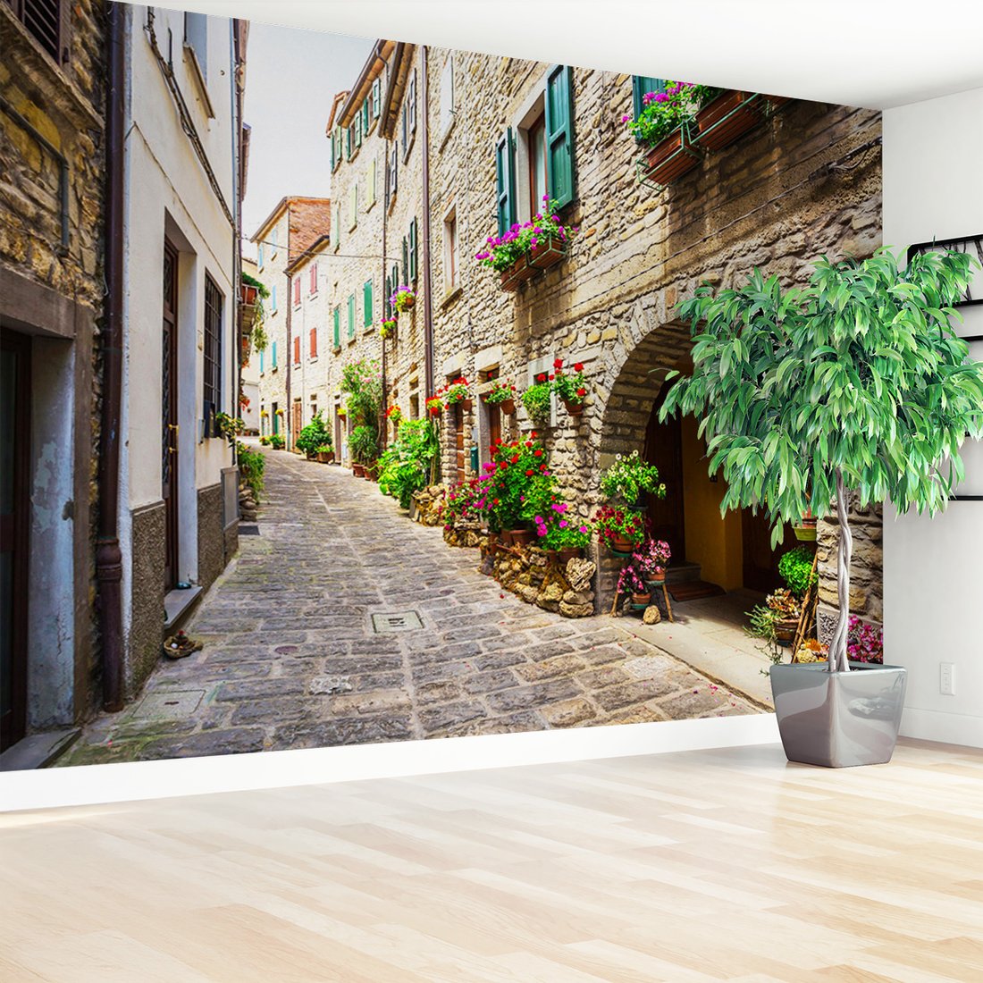 Nadaj swojemu wnętrzu unikalny charakter i głębię dzięki naszej fototapecie z motywem uliczka, kwiaty, budynki. Ta imponująca dekoracja ścienna to połączenie nowoczesnego designu i zapierającego dech w piersiach motywu, które całkowicie odmieni Twoje pomieszczenie