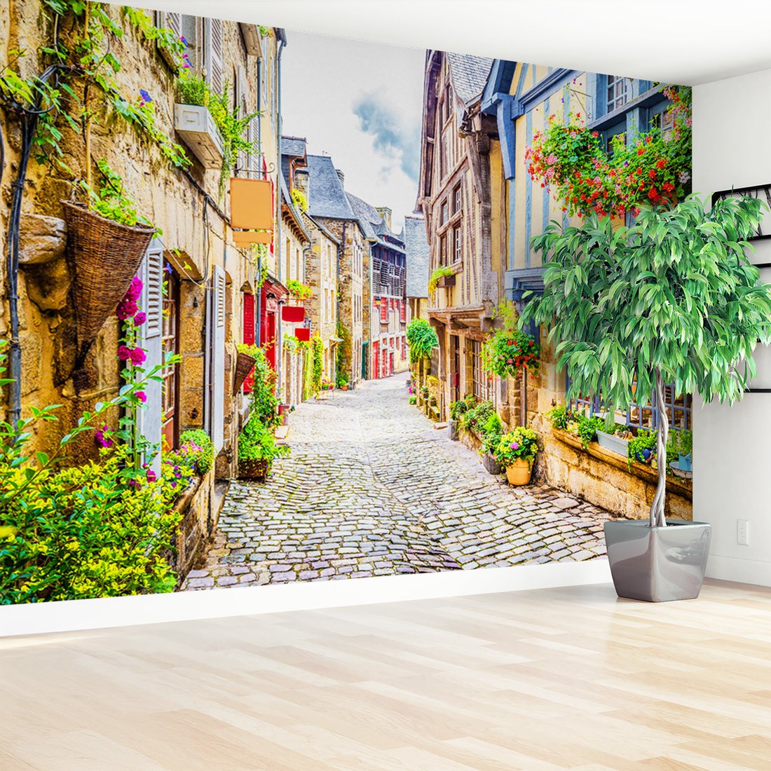 Nadaj swojemu wnętrzu unikalny charakter i głębię dzięki naszej fototapecie z motywem uliczka, kwiaty, budynki. Ta imponująca dekoracja ścienna to połączenie nowoczesnego designu i zapierającego dech w piersiach motywu, które całkowicie odmieni Twoje pomieszczenie