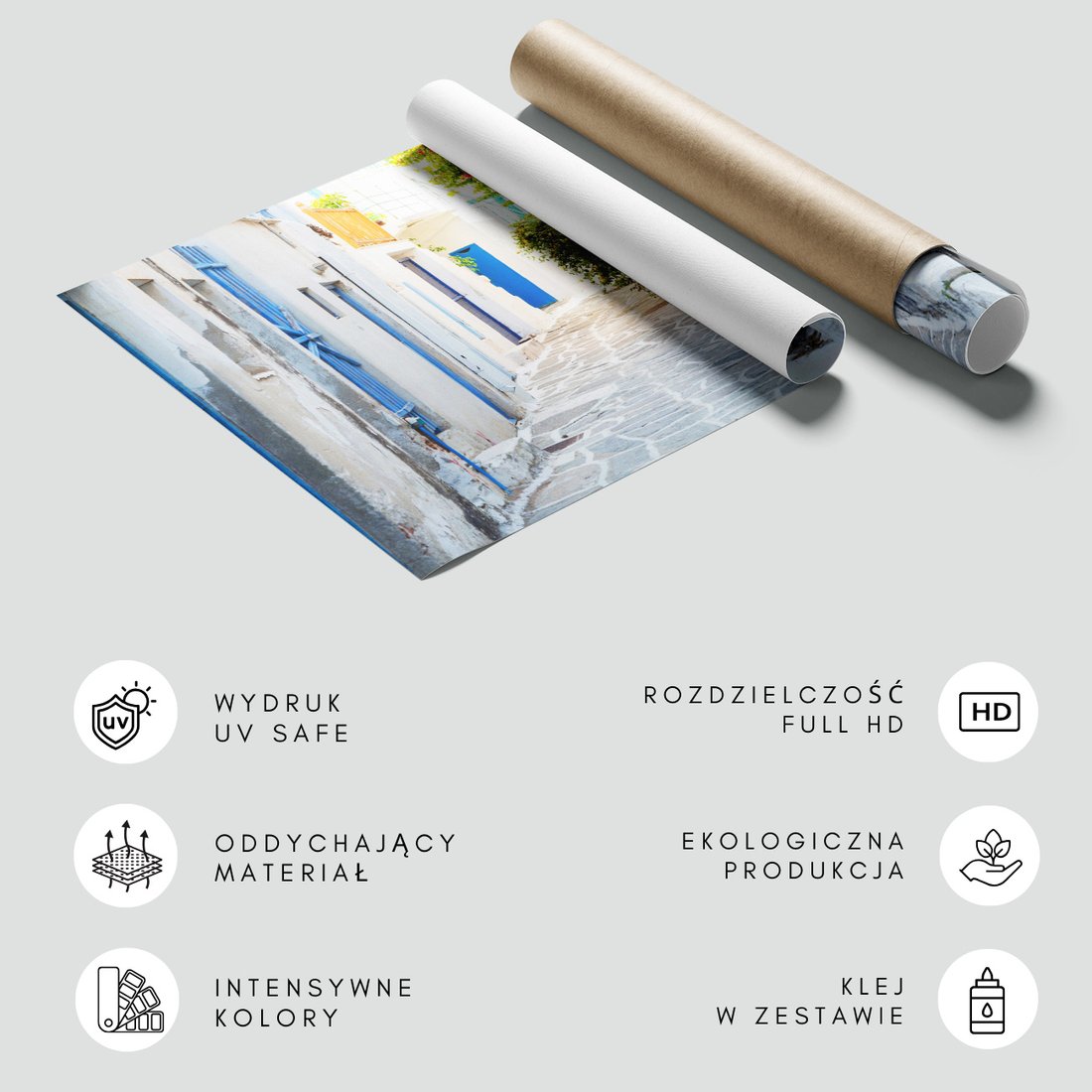 Nadaj swojemu wnętrzu unikalny charakter i głębię dzięki naszej fototapecie z motywem uliczka, miasto, Grecja. Ta imponująca dekoracja ścienna to połączenie nowoczesnego designu i zapierającego dech w piersiach motywu, które całkowicie odmieni Twoje pomieszczenie
