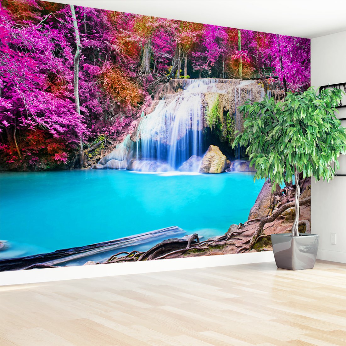 Nadaj swojemu wnętrzu unikalny charakter i głębię dzięki naszej fototapecie z motywem wodospad, natura, krajobraz. Ta imponująca dekoracja ścienna to połączenie nowoczesnego designu i zapierającego dech w piersiach motywu, które całkowicie odmieni Twoje pomieszczenie