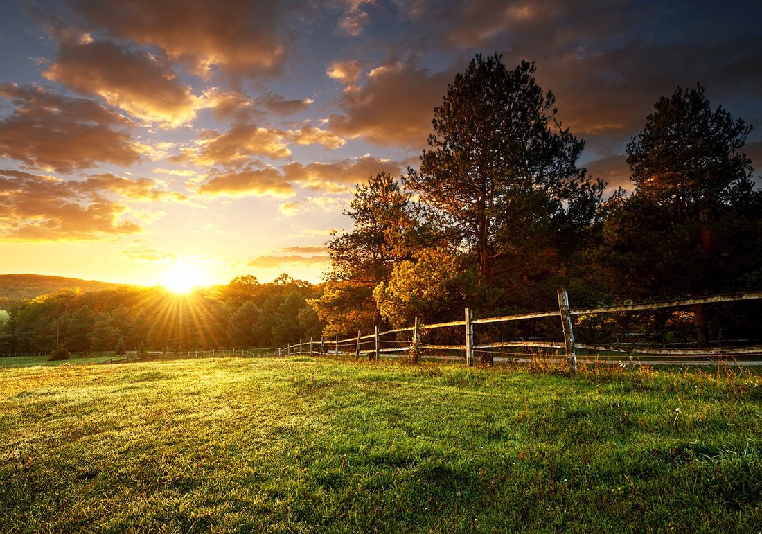- Fototapeta - zachód słońca, krajobraz, drzewa