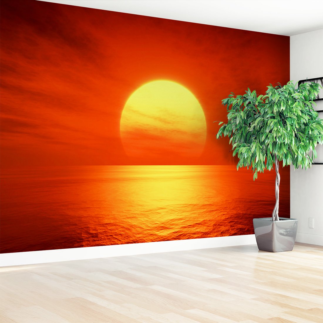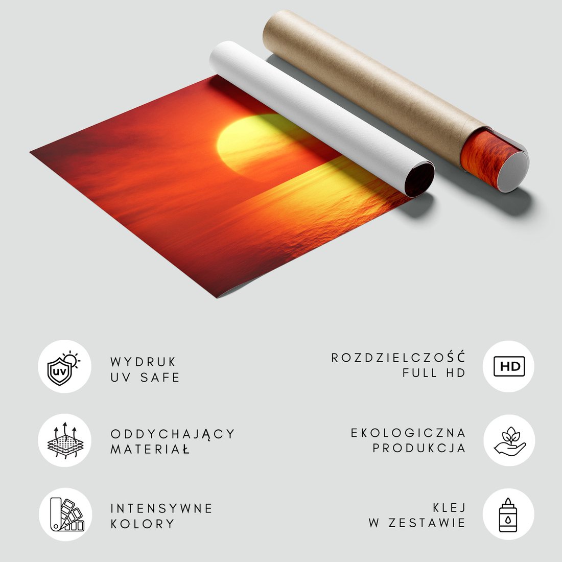 Nadaj swojemu wnętrzu unikalny charakter i głębię dzięki naszej fototapecie z motywem zachód słońca, morze, niebo. Ta imponująca dekoracja ścienna to połączenie nowoczesnego designu i zapierającego dech w piersiach motywu, które całkowicie odmieni Twoje pomieszczenie