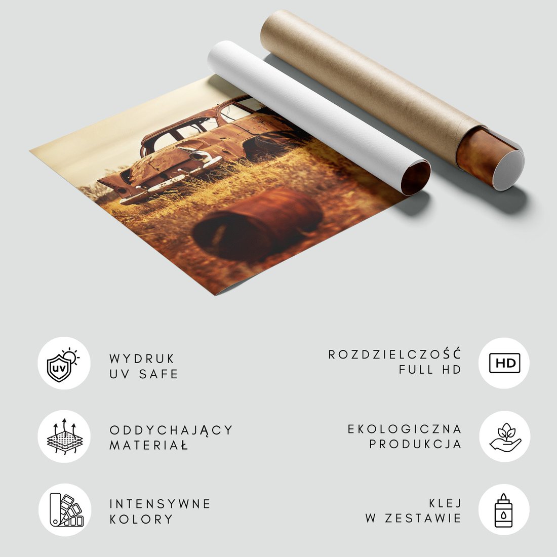 Nadaj swojemu wnętrzu unikalny charakter i głębię dzięki naszej fototapecie z motywem złom, auto, rdza. Ta imponująca dekoracja ścienna to połączenie nowoczesnego designu i zapierającego dech w piersiach motywu, które całkowicie odmieni Twoje pomieszczenie