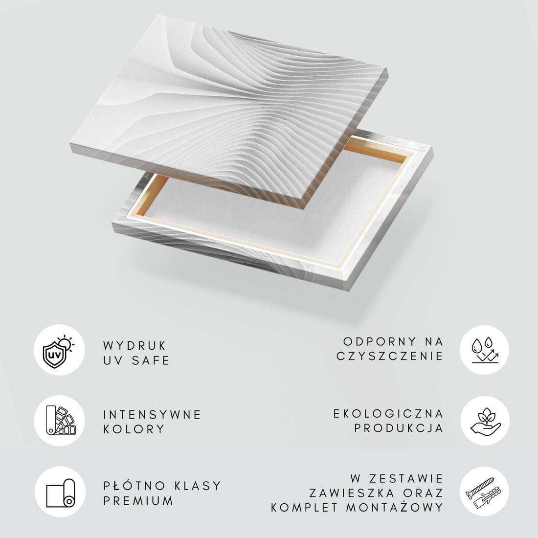 Obraz na płótnie z motywem abstrakcja, fale, biały to kwintesencja estetyki i trwałości. Dzięki łatwemu montażowi i uniwersalnemu wzornictwu, czyni go idealnym wyborem zarówno do codziennego użytku, jak i na wyrafinowany prezent.