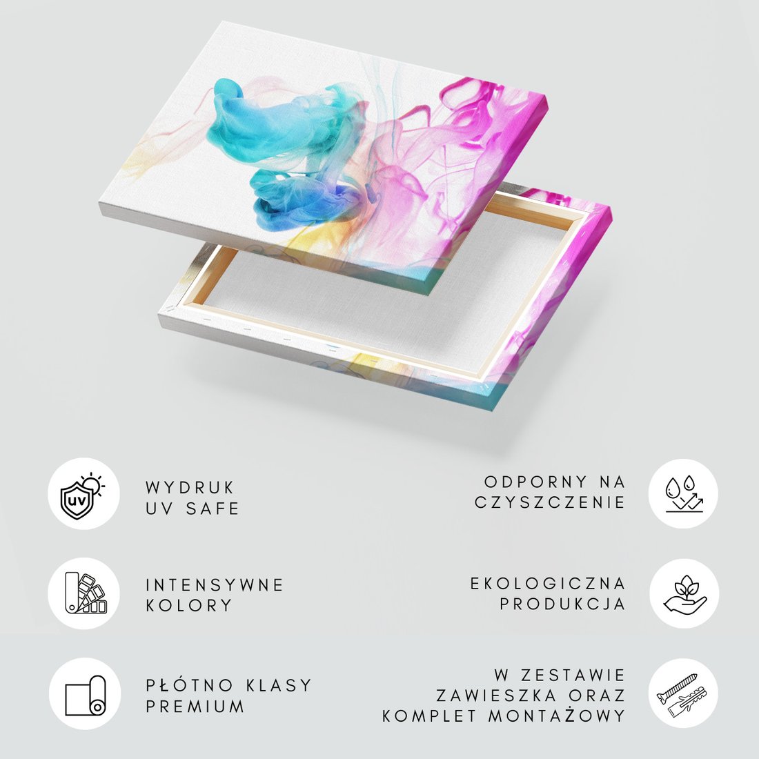 Obraz na płótnie z motywem abstrakcja, kolory, płyny to kwintesencja estetyki i trwałości. Dzięki łatwemu montażowi i uniwersalnemu wzornictwu, czyni go idealnym wyborem zarówno do codziennego użytku, jak i na wyrafinowany prezent.