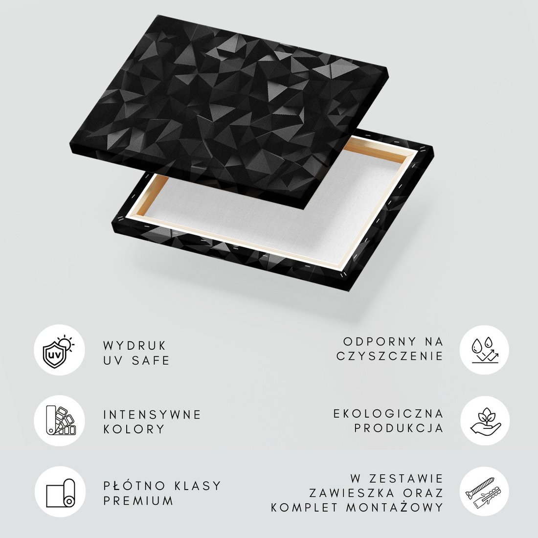 Obraz na płótnie z motywem abstrakcja, trójkąty, ciemny to kwintesencja estetyki i trwałości. Dzięki łatwemu montażowi i uniwersalnemu wzornictwu, czyni go idealnym wyborem zarówno do codziennego użytku, jak i na wyrafinowany prezent.