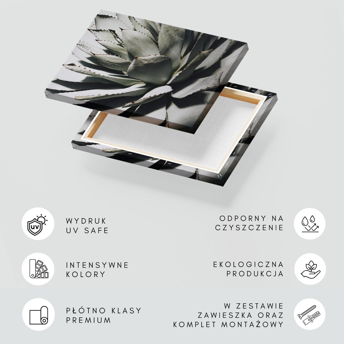 Obraz na płótnie z motywem agawa, roślina, liście to kwintesencja estetyki i trwałości. Dzięki łatwemu montażowi i uniwersalnemu wzornictwu, czyni go idealnym wyborem zarówno do codziennego użytku, jak i na wyrafinowany prezent.