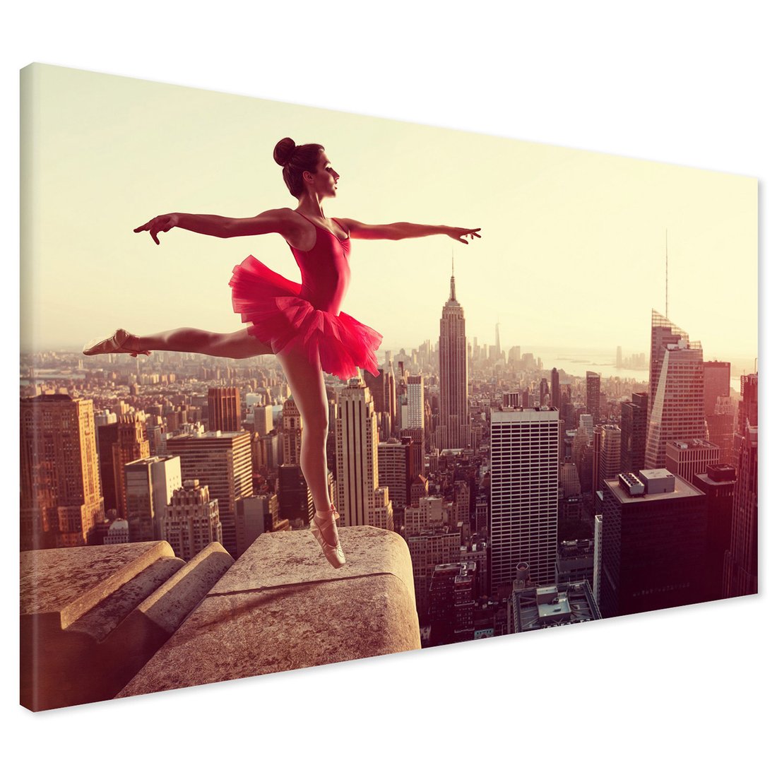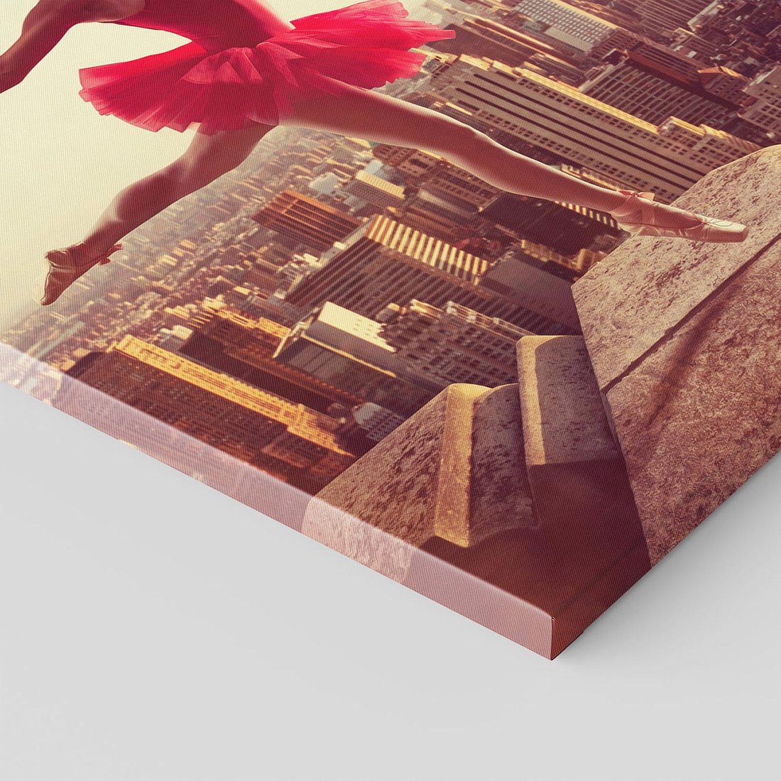 Obraz na płótnie z motywem baletnica, miasto, taniec to kwintesencja estetyki i trwałości. Dzięki łatwemu montażowi i uniwersalnemu wzornictwu, czyni go idealnym wyborem zarówno do codziennego użytku, jak i na wyrafinowany prezent.