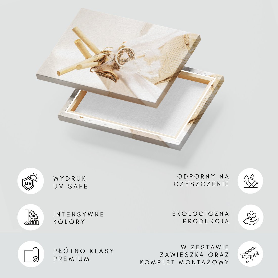 Obraz na płótnie z motywem dekoracja, tipi, pióra to kwintesencja estetyki i trwałości. Dzięki łatwemu montażowi i uniwersalnemu wzornictwu, czyni go idealnym wyborem zarówno do codziennego użytku, jak i na wyrafinowany prezent.