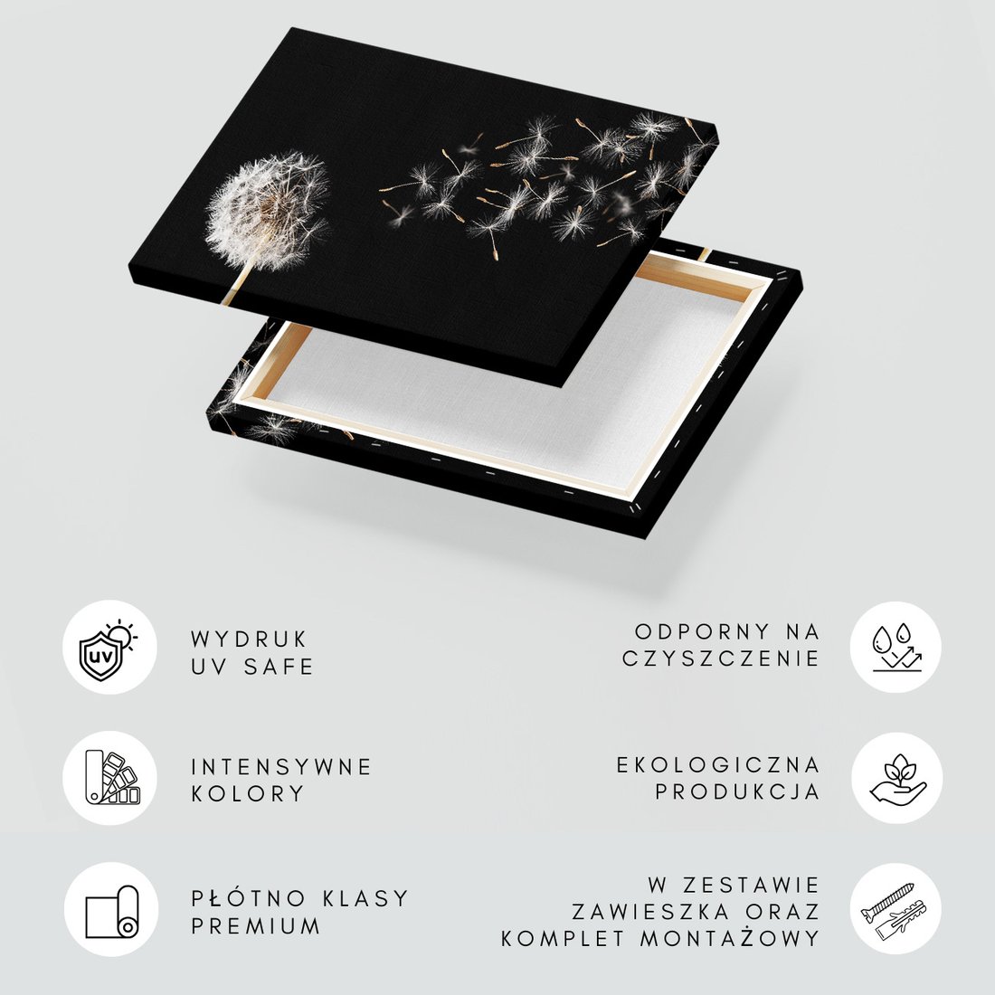 Obraz na płótnie z motywem Dmuchawiec, Nasiona, Delikatność to kwintesencja estetyki i trwałości. Dzięki łatwemu montażowi i uniwersalnemu wzornictwu, czyni go idealnym wyborem zarówno do codziennego użytku, jak i na wyrafinowany prezent.