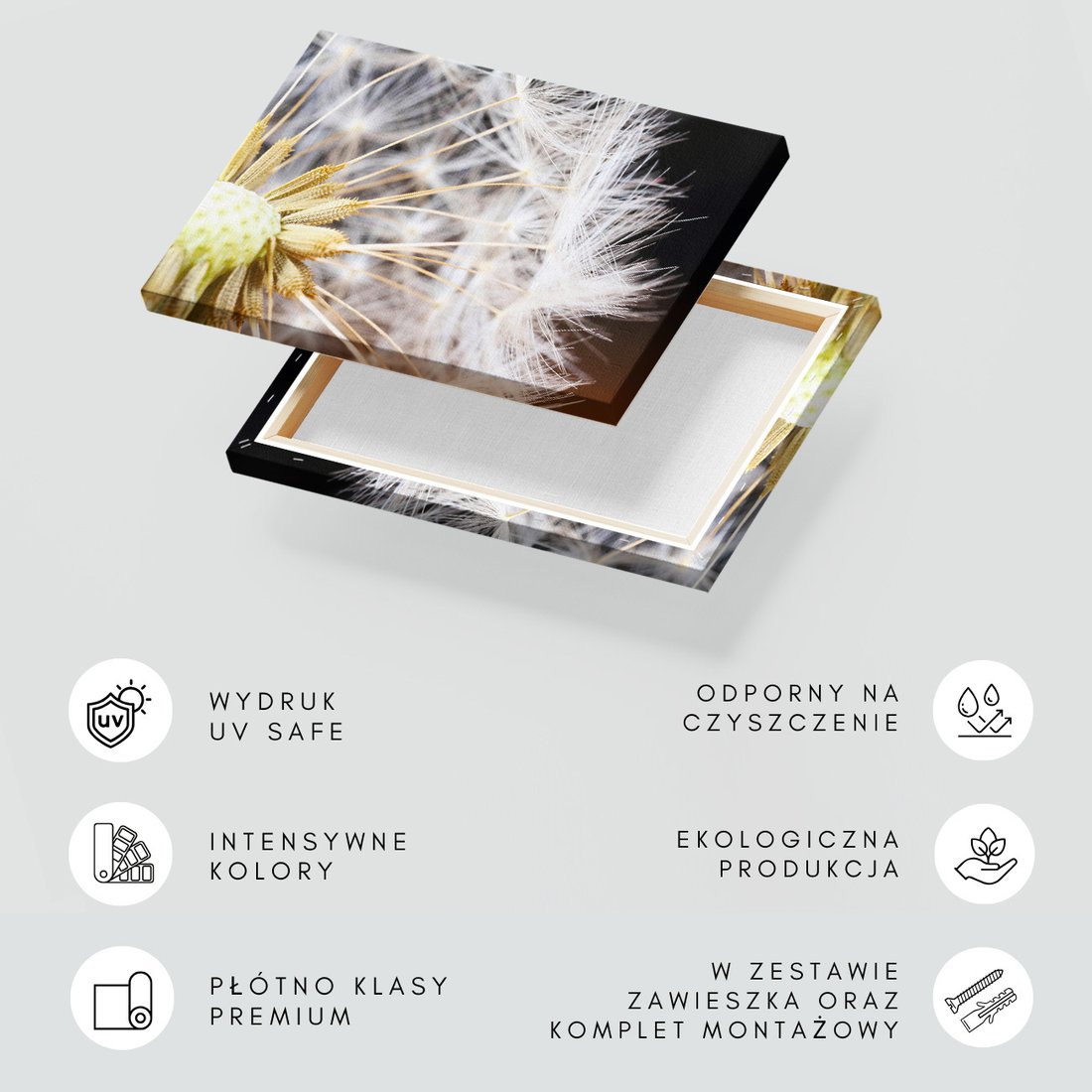 Obraz na płótnie z motywem dmuchawiec, nasiona, makro to kwintesencja estetyki i trwałości. Dzięki łatwemu montażowi i uniwersalnemu wzornictwu, czyni go idealnym wyborem zarówno do codziennego użytku, jak i na wyrafinowany prezent.