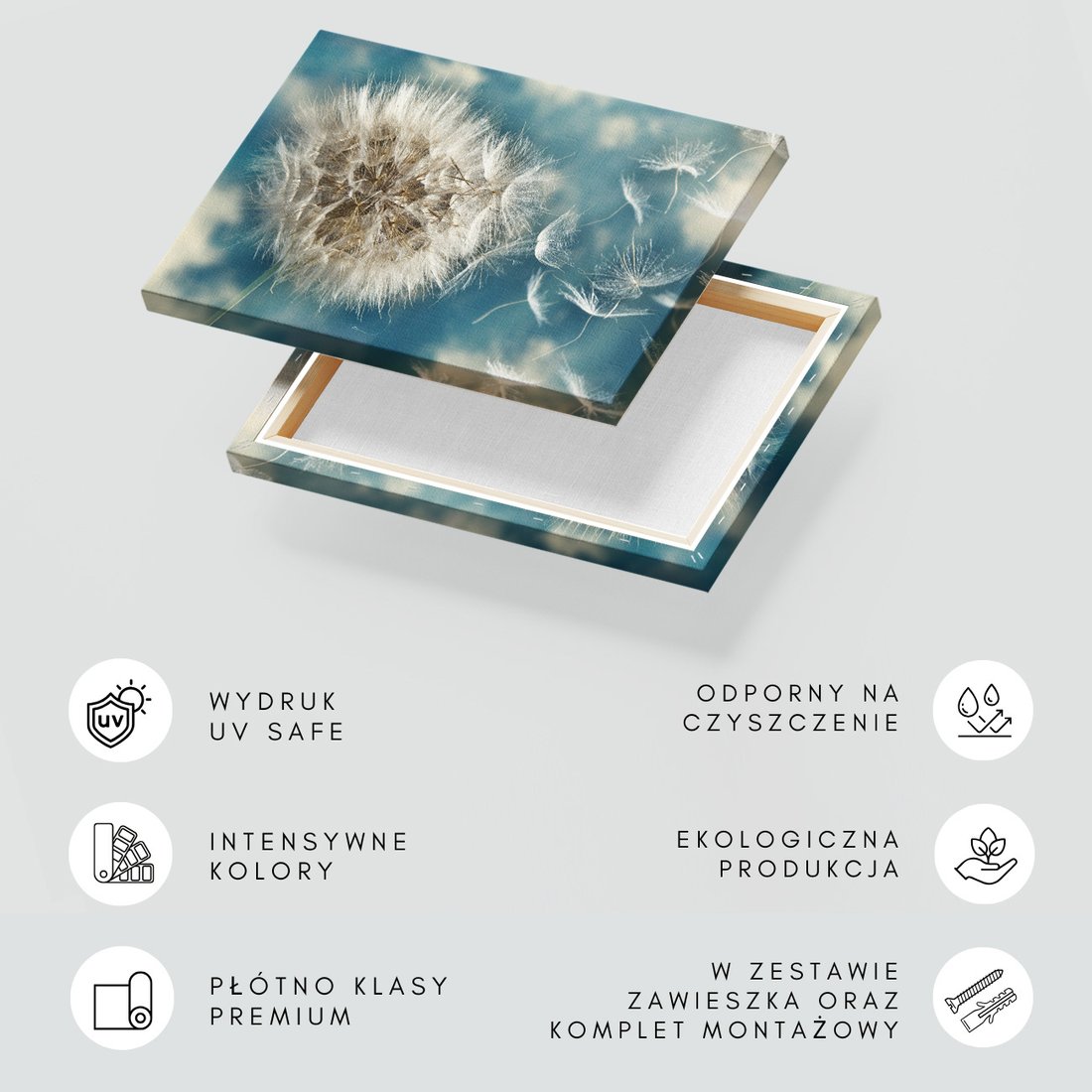 Obraz na płótnie z motywem Dmuchawiec, Nasiona, Natura to kwintesencja estetyki i trwałości. Dzięki łatwemu montażowi i uniwersalnemu wzornictwu, czyni go idealnym wyborem zarówno do codziennego użytku, jak i na wyrafinowany prezent.