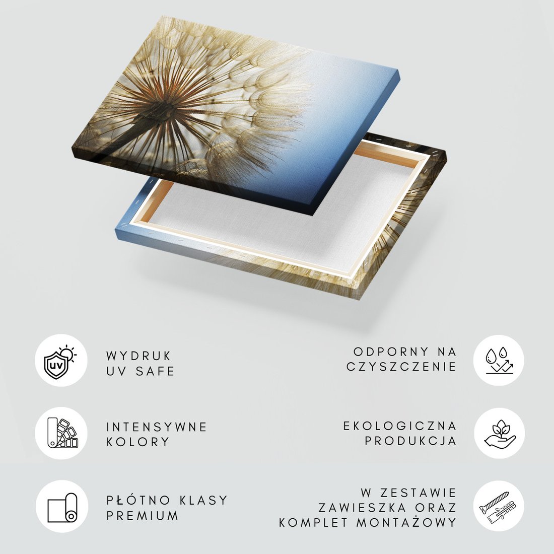 Obraz na płótnie z motywem dmuchawiec, nasiona, natura to kwintesencja estetyki i trwałości. Dzięki łatwemu montażowi i uniwersalnemu wzornictwu, czyni go idealnym wyborem zarówno do codziennego użytku, jak i na wyrafinowany prezent.