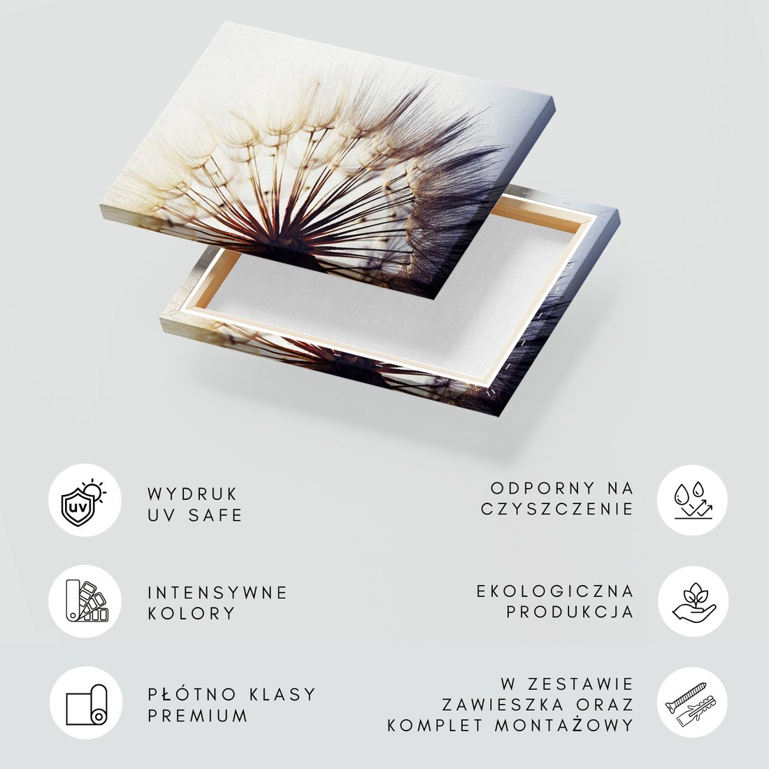Obraz na płótnie z motywem dmuchawiec, nasiona, natura to kwintesencja estetyki i trwałości. Dzięki łatwemu montażowi i uniwersalnemu wzornictwu, czyni go idealnym wyborem zarówno do codziennego użytku, jak i na wyrafinowany prezent.