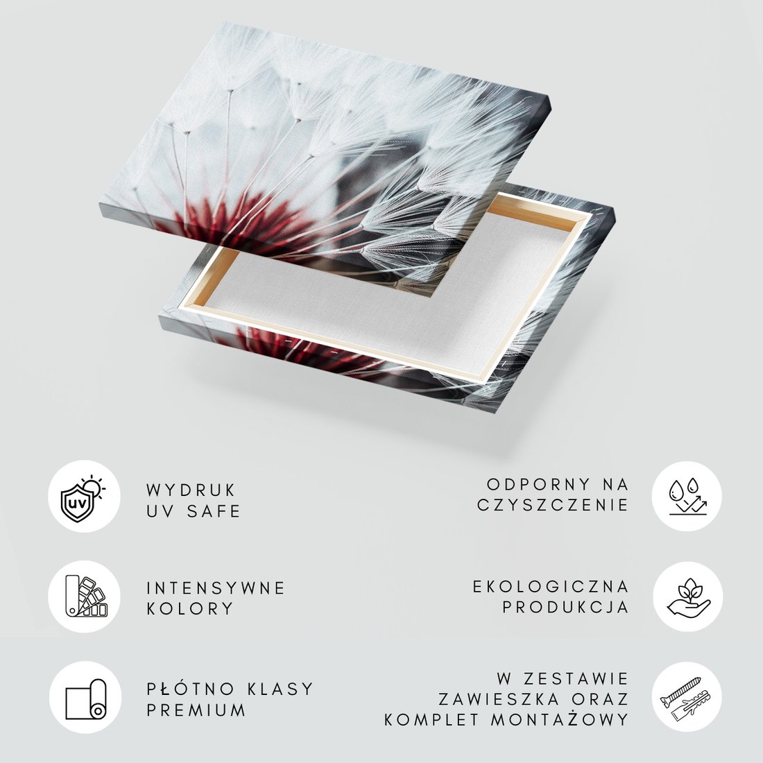 Obraz na płótnie z motywem dmuchawiec, natura, nasiona to kwintesencja estetyki i trwałości. Dzięki łatwemu montażowi i uniwersalnemu wzornictwu, czyni go idealnym wyborem zarówno do codziennego użytku, jak i na wyrafinowany prezent.