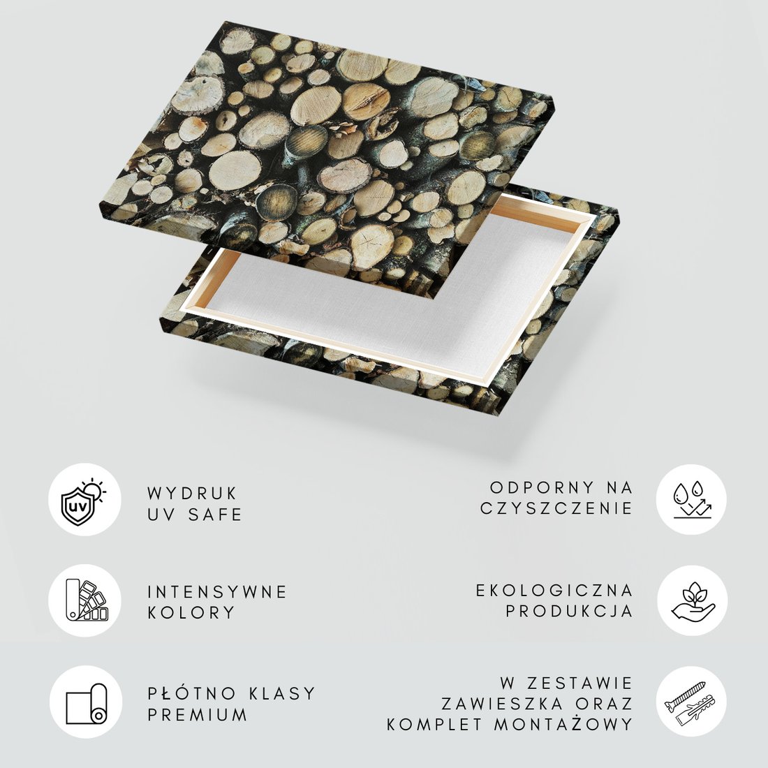 Obraz na płótnie z motywem drewno, pnie, kora to kwintesencja estetyki i trwałości. Dzięki łatwemu montażowi i uniwersalnemu wzornictwu, czyni go idealnym wyborem zarówno do codziennego użytku, jak i na wyrafinowany prezent.