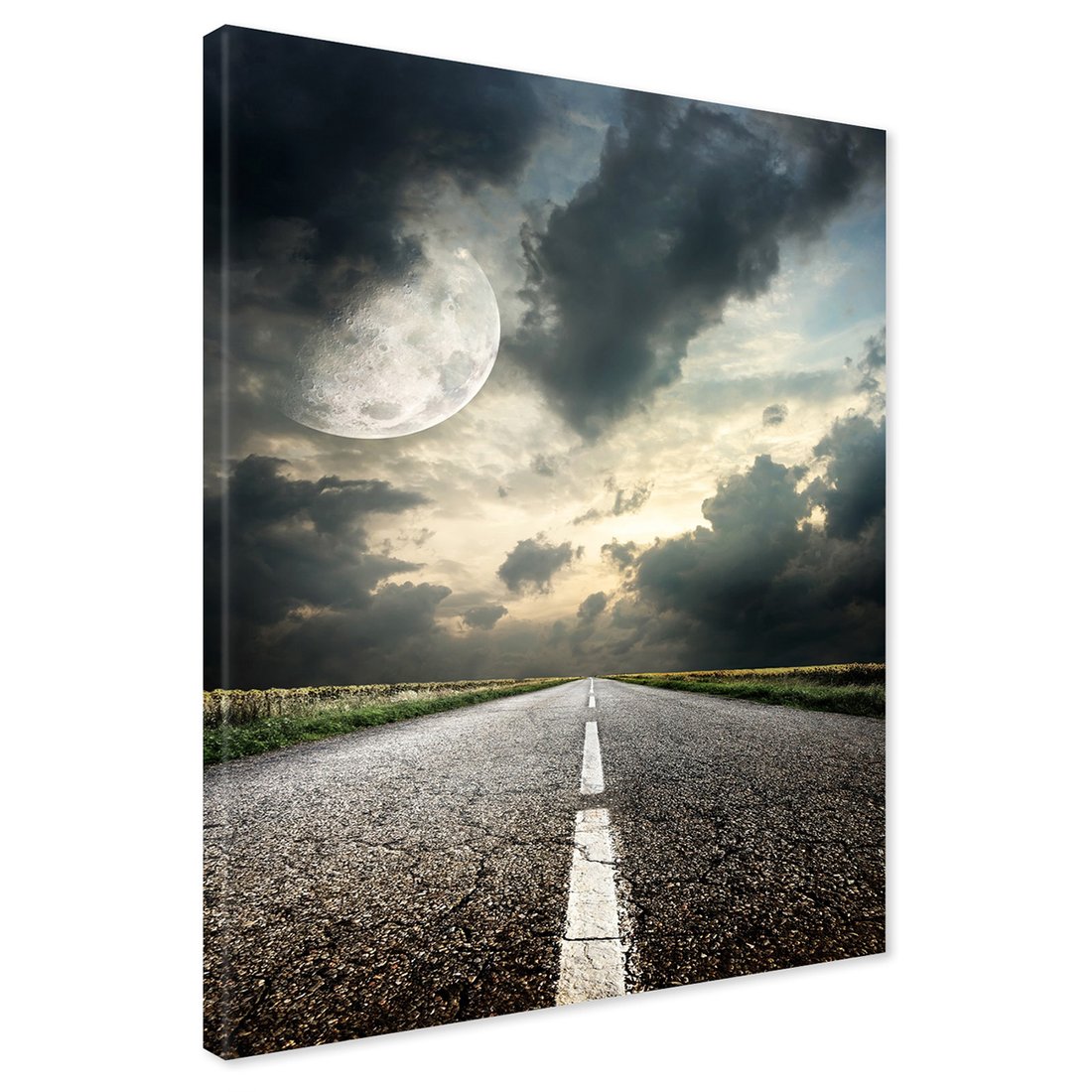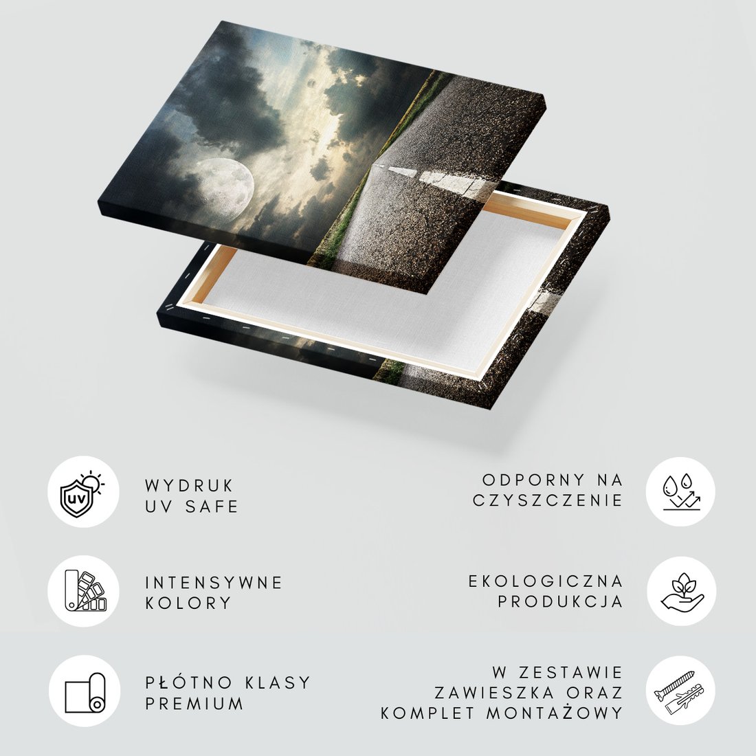 Obraz na płótnie z motywem droga, niebo, księżyc to kwintesencja estetyki i trwałości. Dzięki łatwemu montażowi i uniwersalnemu wzornictwu, czyni go idealnym wyborem zarówno do codziennego użytku, jak i na wyrafinowany prezent.