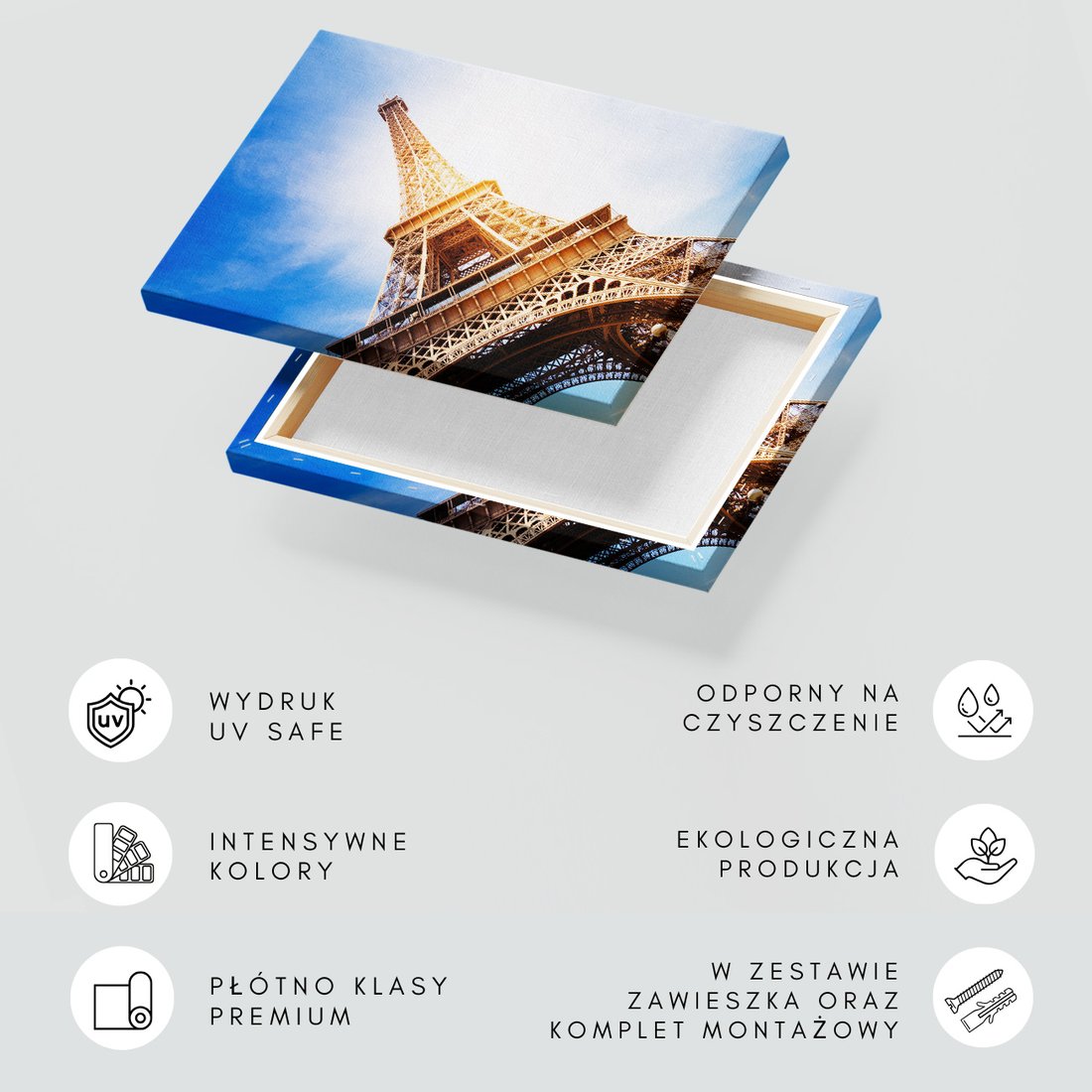 Obraz na płótnie z motywem Eiffel, wieża, Paryż to kwintesencja estetyki i trwałości. Dzięki łatwemu montażowi i uniwersalnemu wzornictwu, czyni go idealnym wyborem zarówno do codziennego użytku, jak i na wyrafinowany prezent.