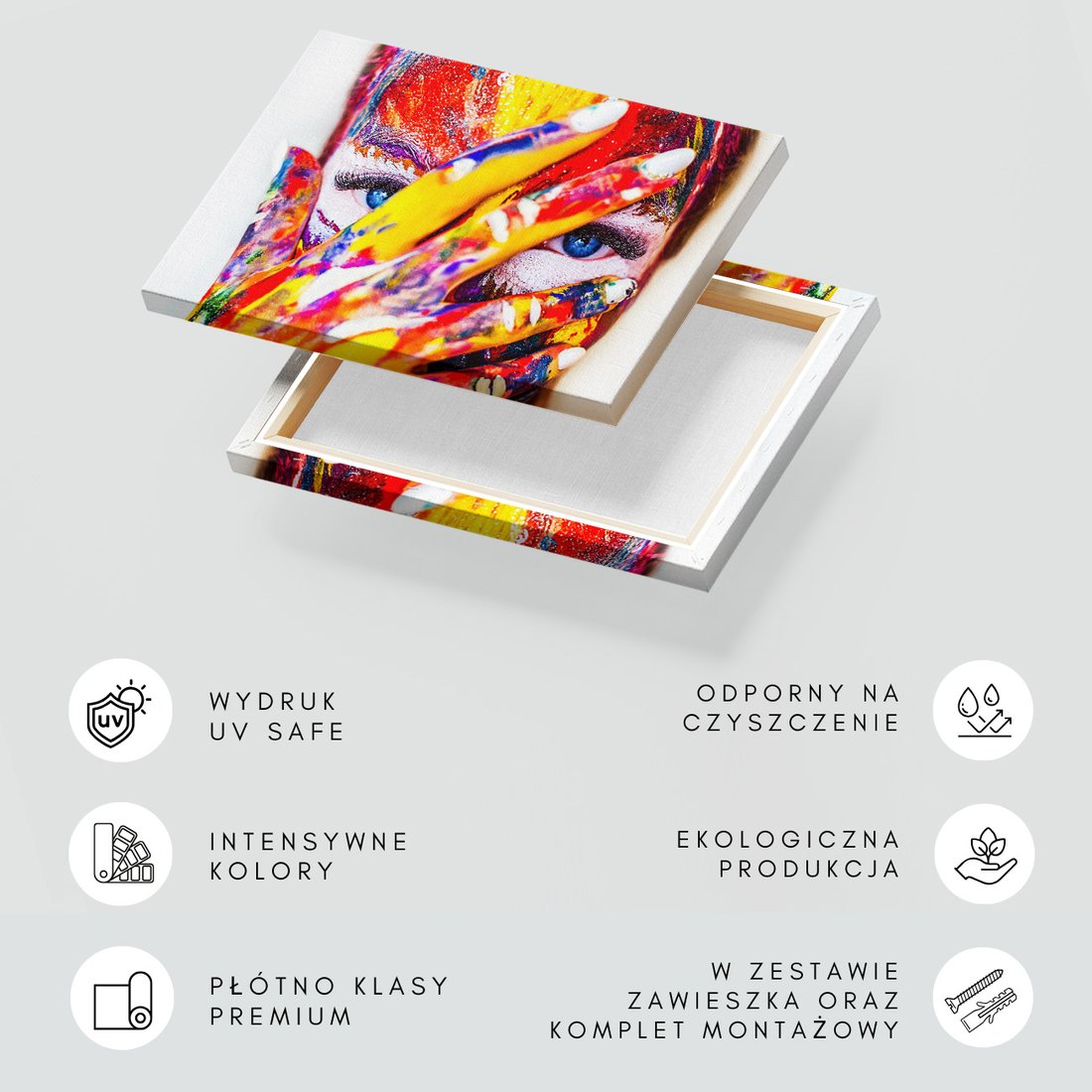 Obraz na płótnie z motywem farby, kolory, abstrakcja to kwintesencja estetyki i trwałości. Dzięki łatwemu montażowi i uniwersalnemu wzornictwu, czyni go idealnym wyborem zarówno do codziennego użytku, jak i na wyrafinowany prezent.