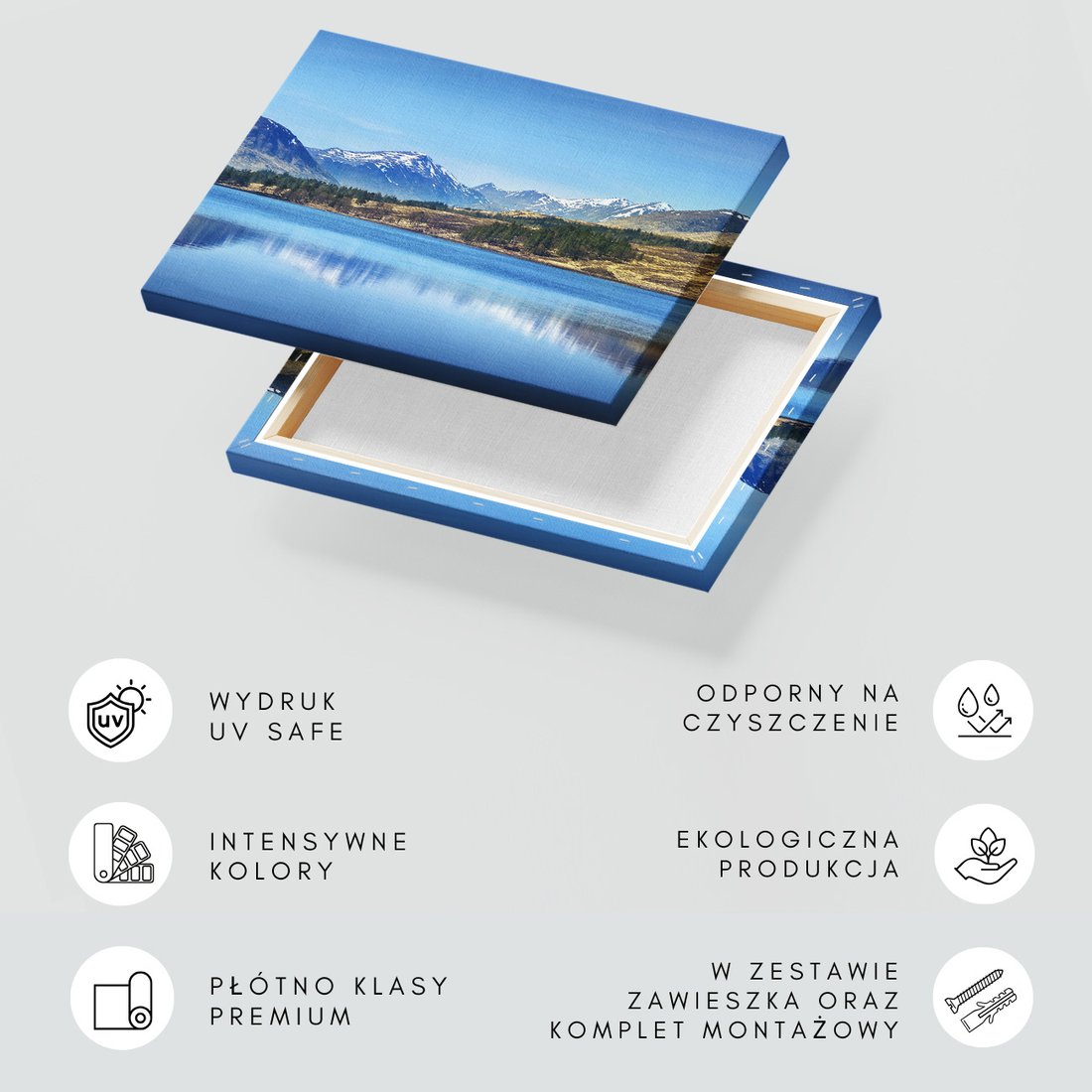 Obraz na płótnie z motywem góry, jezioro, krajobraz to kwintesencja estetyki i trwałości. Dzięki łatwemu montażowi i uniwersalnemu wzornictwu, czyni go idealnym wyborem zarówno do codziennego użytku, jak i na wyrafinowany prezent.