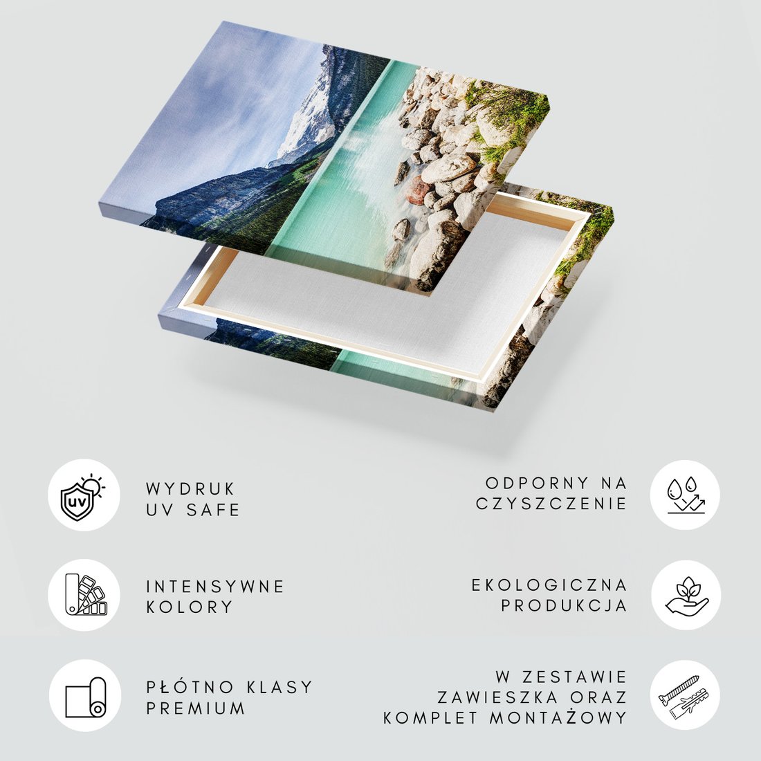 Obraz na płótnie z motywem góry, jezioro, krajobraz to kwintesencja estetyki i trwałości. Dzięki łatwemu montażowi i uniwersalnemu wzornictwu, czyni go idealnym wyborem zarówno do codziennego użytku, jak i na wyrafinowany prezent.