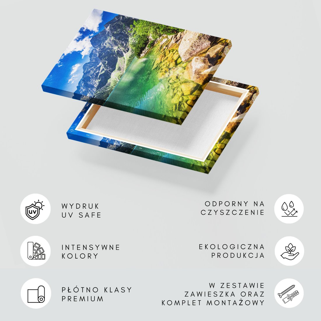 Obraz na płótnie z motywem góry, jezioro, krajobraz to kwintesencja estetyki i trwałości. Dzięki łatwemu montażowi i uniwersalnemu wzornictwu, czyni go idealnym wyborem zarówno do codziennego użytku, jak i na wyrafinowany prezent.