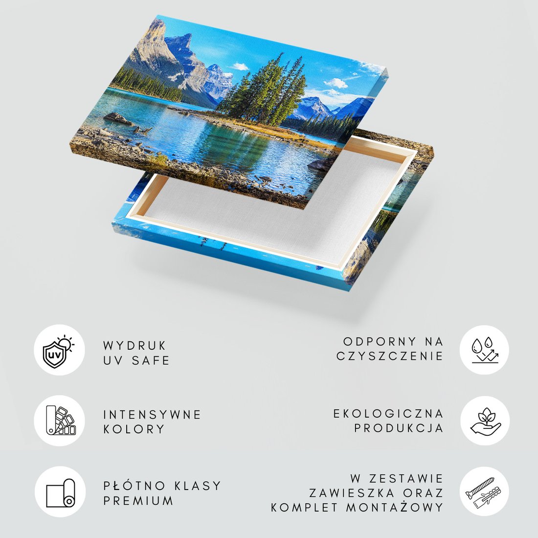Obraz na płótnie z motywem góry, jezioro, lasy to kwintesencja estetyki i trwałości. Dzięki łatwemu montażowi i uniwersalnemu wzornictwu, czyni go idealnym wyborem zarówno do codziennego użytku, jak i na wyrafinowany prezent.