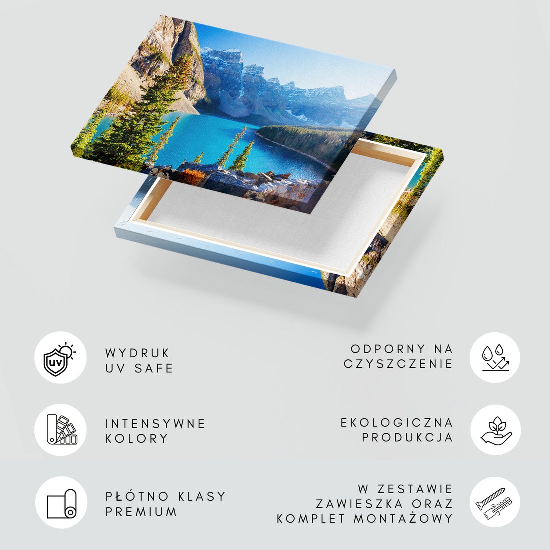 Obraz na płótnie z motywem góry, jezioro, lasy to kwintesencja estetyki i trwałości. Dzięki łatwemu montażowi i uniwersalnemu wzornictwu, czyni go idealnym wyborem zarówno do codziennego użytku, jak i na wyrafinowany prezent.