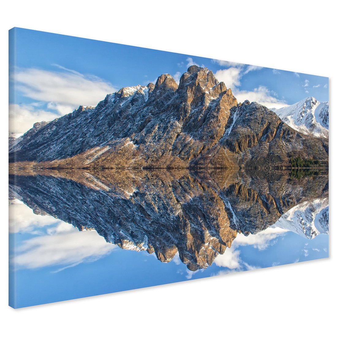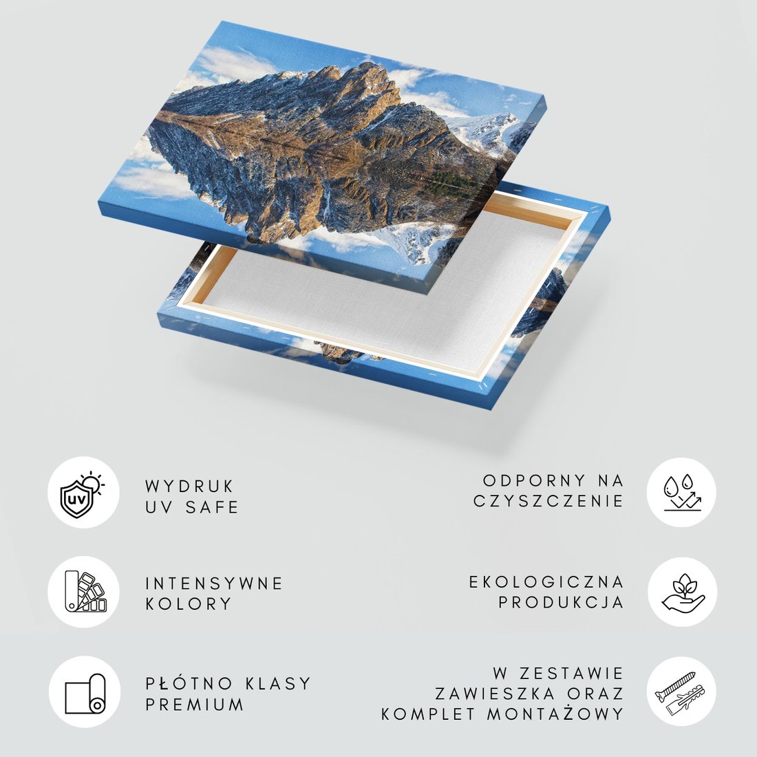 Obraz na płótnie z motywem góry, odbicie, woda to kwintesencja estetyki i trwałości. Dzięki łatwemu montażowi i uniwersalnemu wzornictwu, czyni go idealnym wyborem zarówno do codziennego użytku, jak i na wyrafinowany prezent.