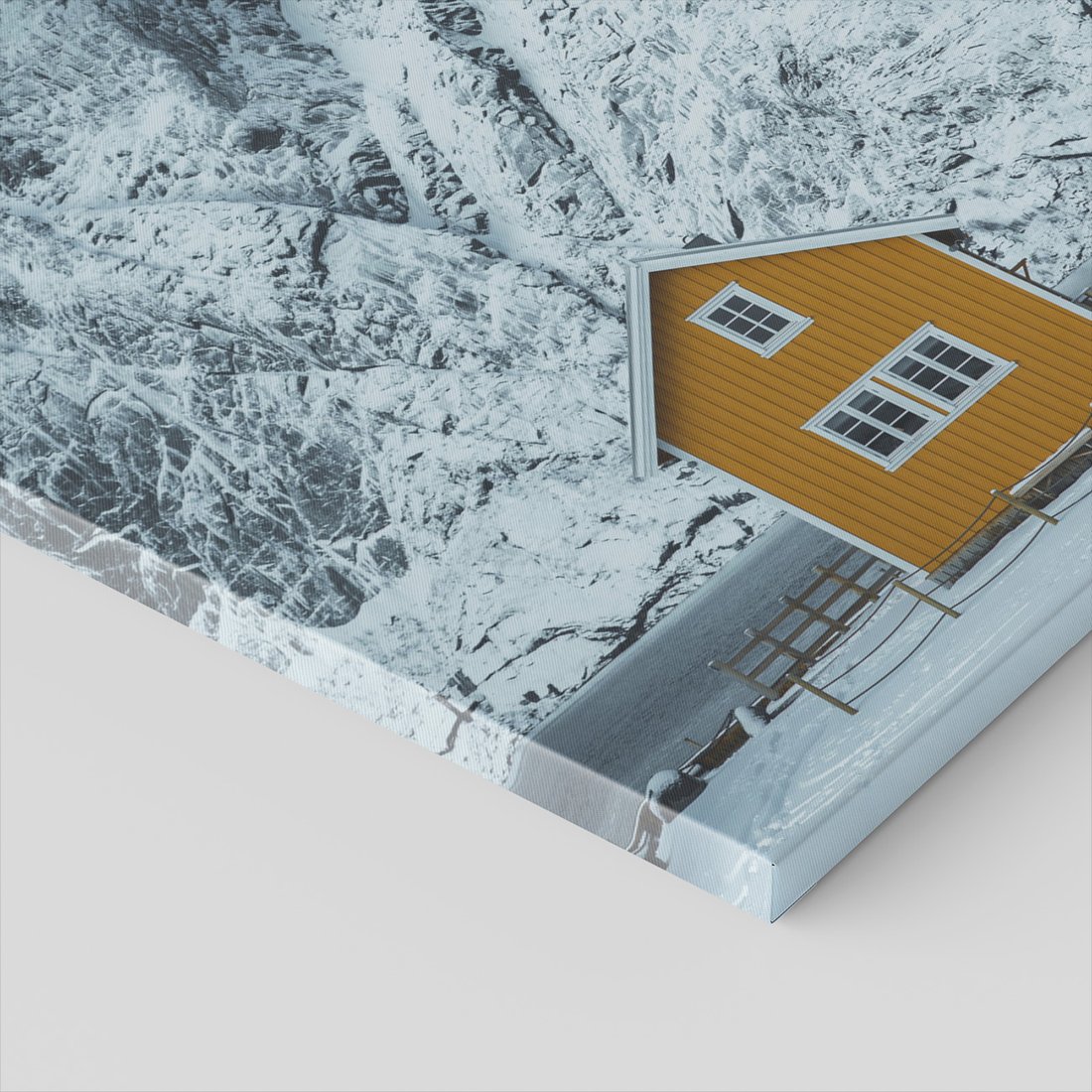 Obraz na płótnie z motywem góry, śnieg, dom to kwintesencja estetyki i trwałości. Dzięki łatwemu montażowi i uniwersalnemu wzornictwu, czyni go idealnym wyborem zarówno do codziennego użytku, jak i na wyrafinowany prezent.