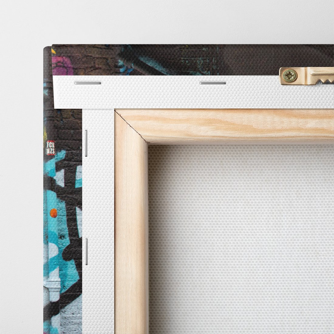 Obraz na płótnie z motywem graffiti, oko, ściana to kwintesencja estetyki i trwałości. Dzięki łatwemu montażowi i uniwersalnemu wzornictwu, czyni go idealnym wyborem zarówno do codziennego użytku, jak i na wyrafinowany prezent.