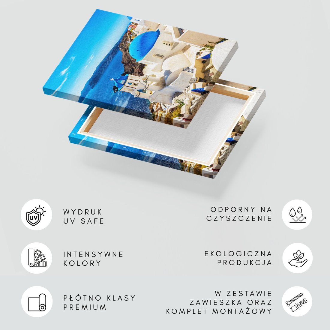 Obraz na płótnie z motywem Grecja, Santorini, morze to kwintesencja estetyki i trwałości. Dzięki łatwemu montażowi i uniwersalnemu wzornictwu, czyni go idealnym wyborem zarówno do codziennego użytku, jak i na wyrafinowany prezent.