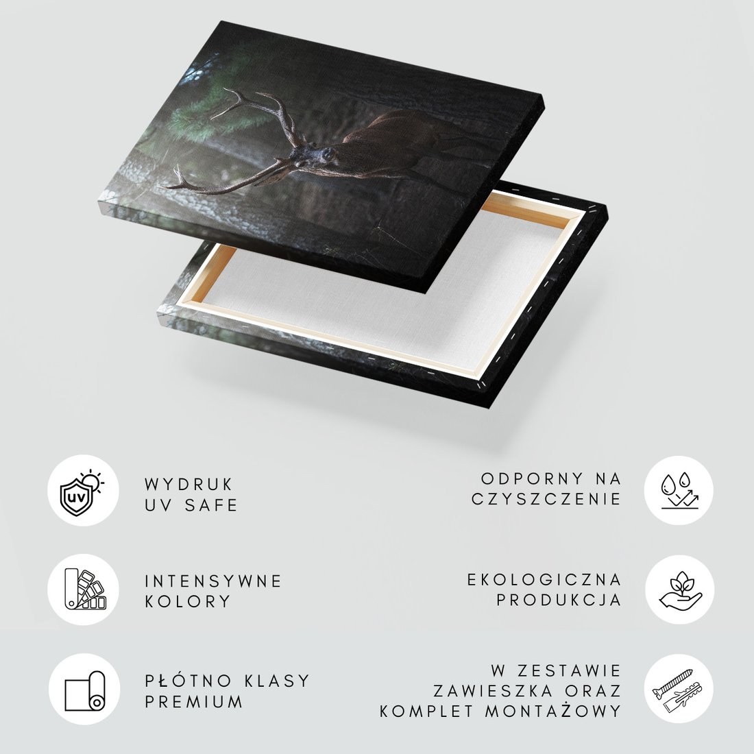 Obraz na płótnie z motywem jeleń, las, zwierzę to kwintesencja estetyki i trwałości. Dzięki łatwemu montażowi i uniwersalnemu wzornictwu, czyni go idealnym wyborem zarówno do codziennego użytku, jak i na wyrafinowany prezent.